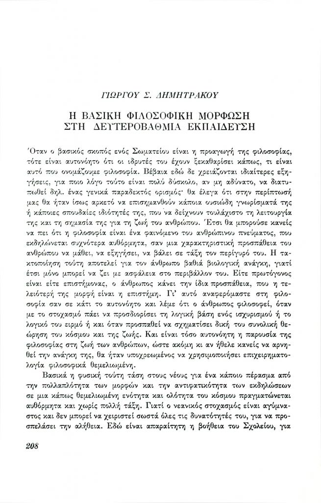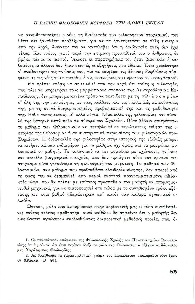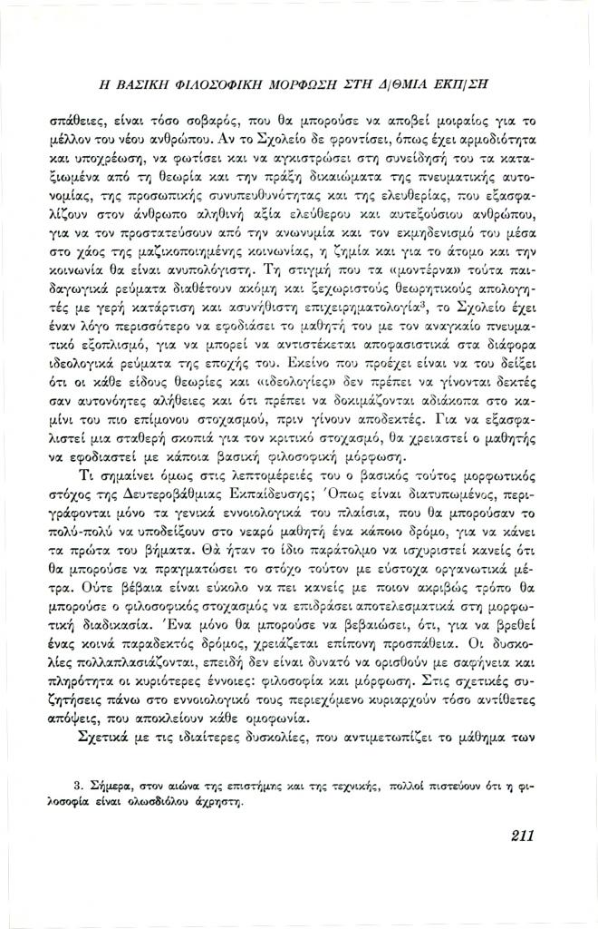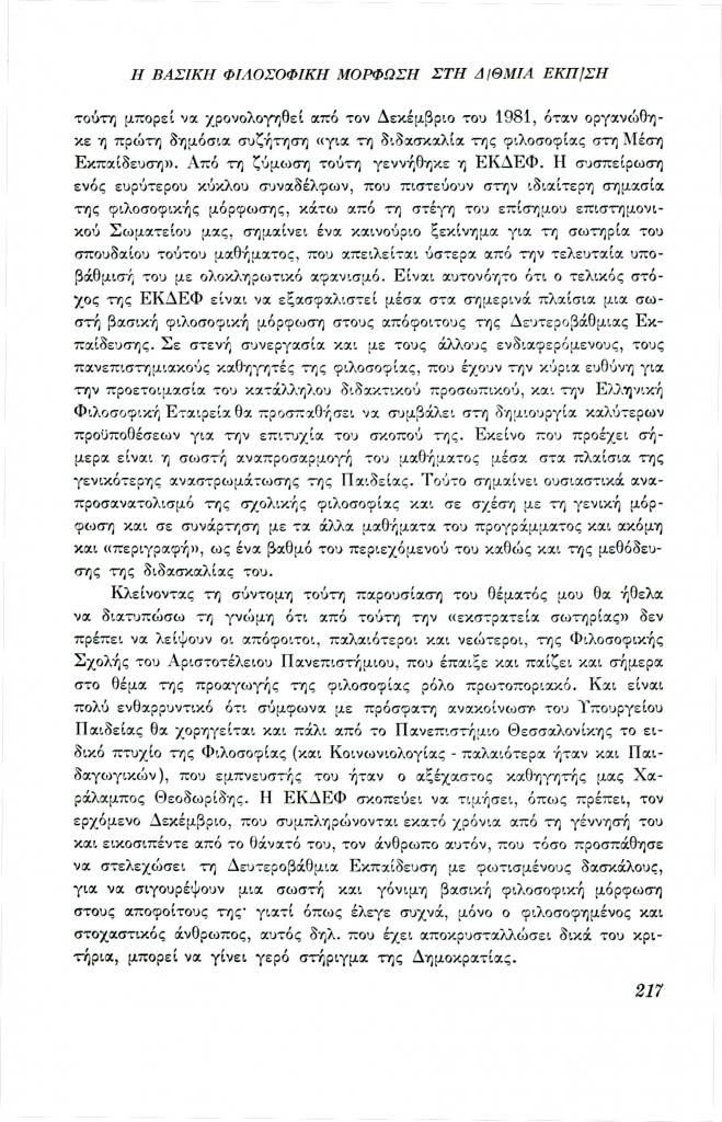 , «Η βασική φιλοσοφική μόρφωση στη δευτεροβάθμια εκπαίδευση»,