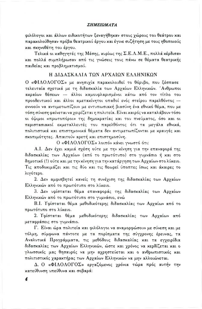 (ανυπόγραφο), «Σημειώματα. Η διδασκαλία των αρχαίων ελληνικών», Φιλόλογος, τχ. 35 (Άνοιξη 1984), σ. 4-5