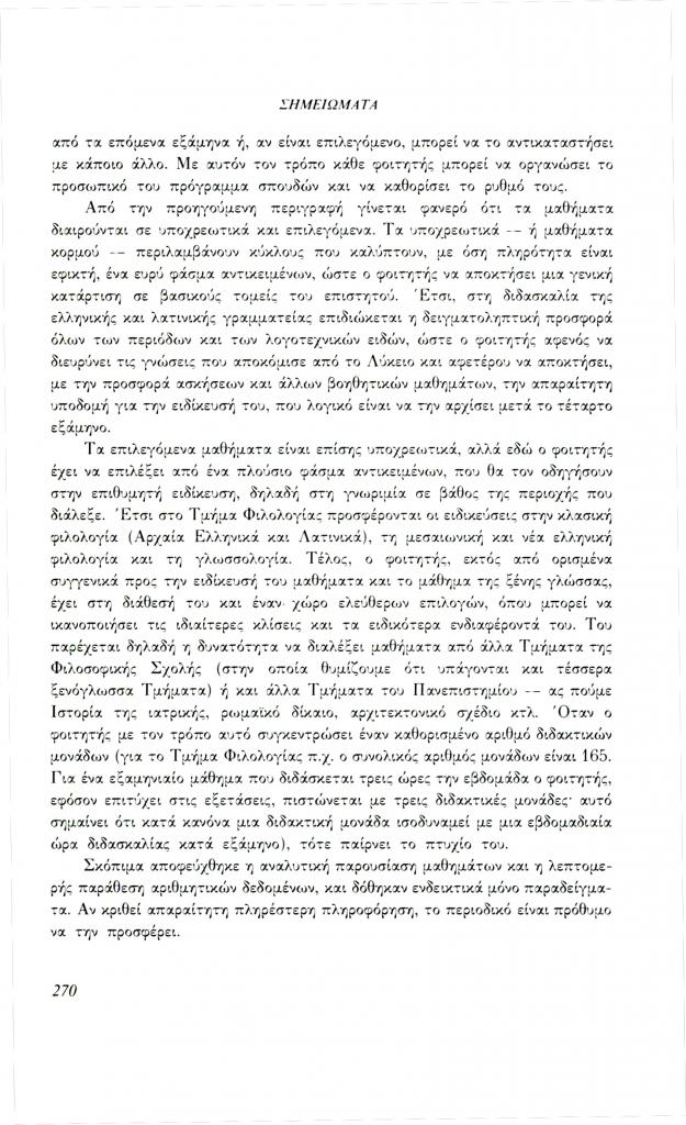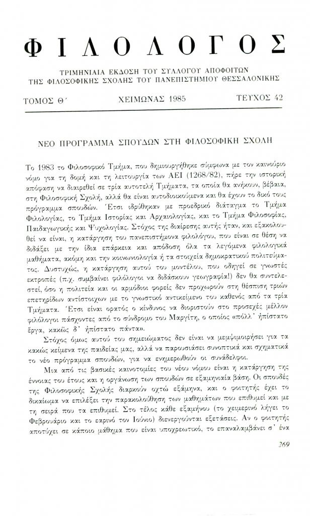 , «Σημειώματα. Νέο πρόγραμμα σπουδών στη Φιλοσοφική Σχολή»,