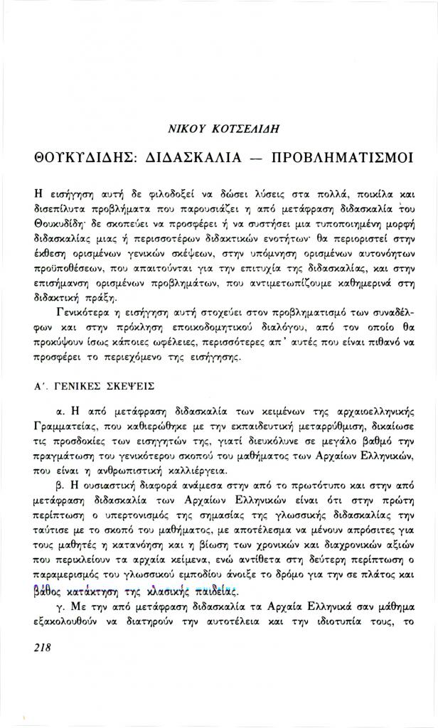 , «Θουκυδίδης: Διδασκαλία – Προβληματισμοί»,