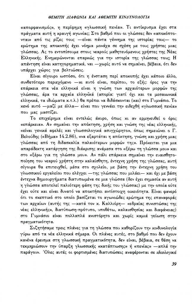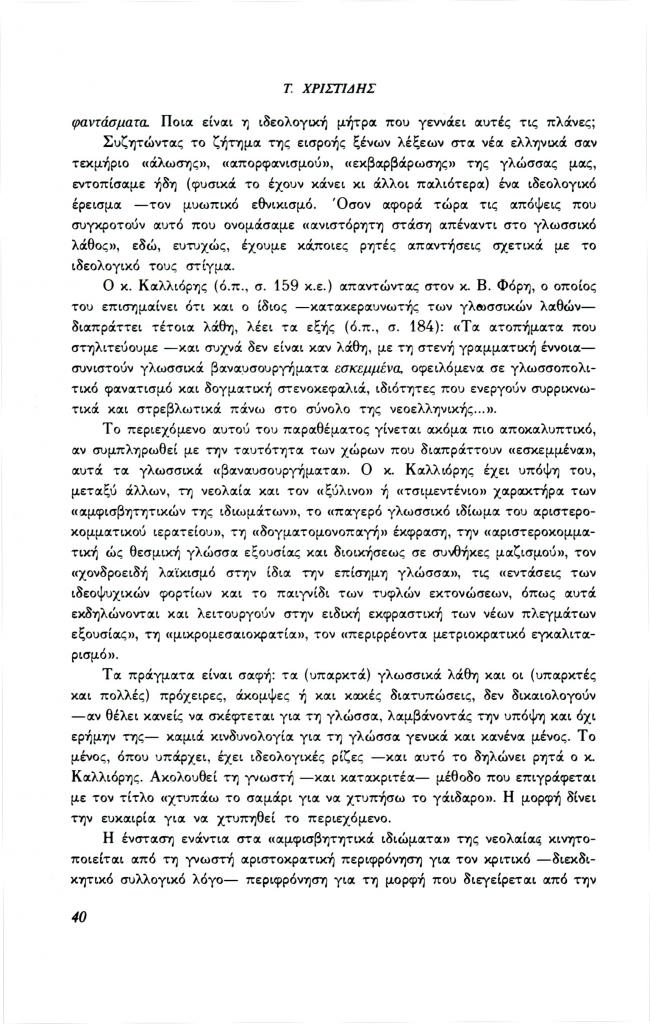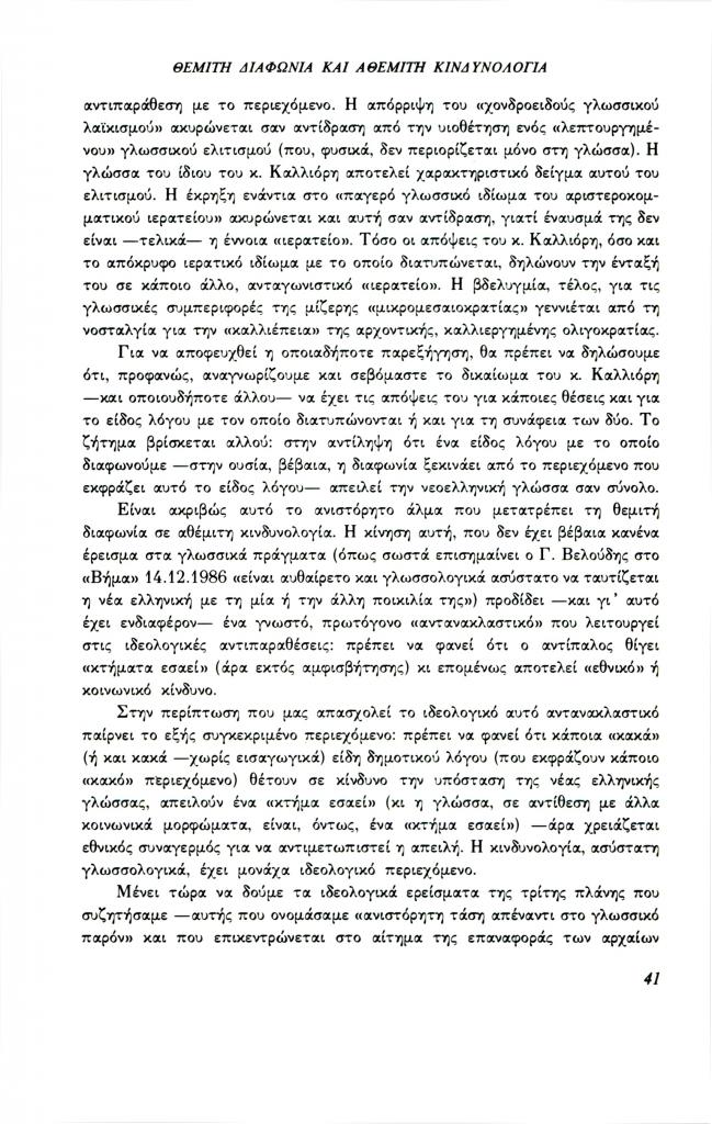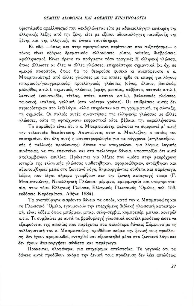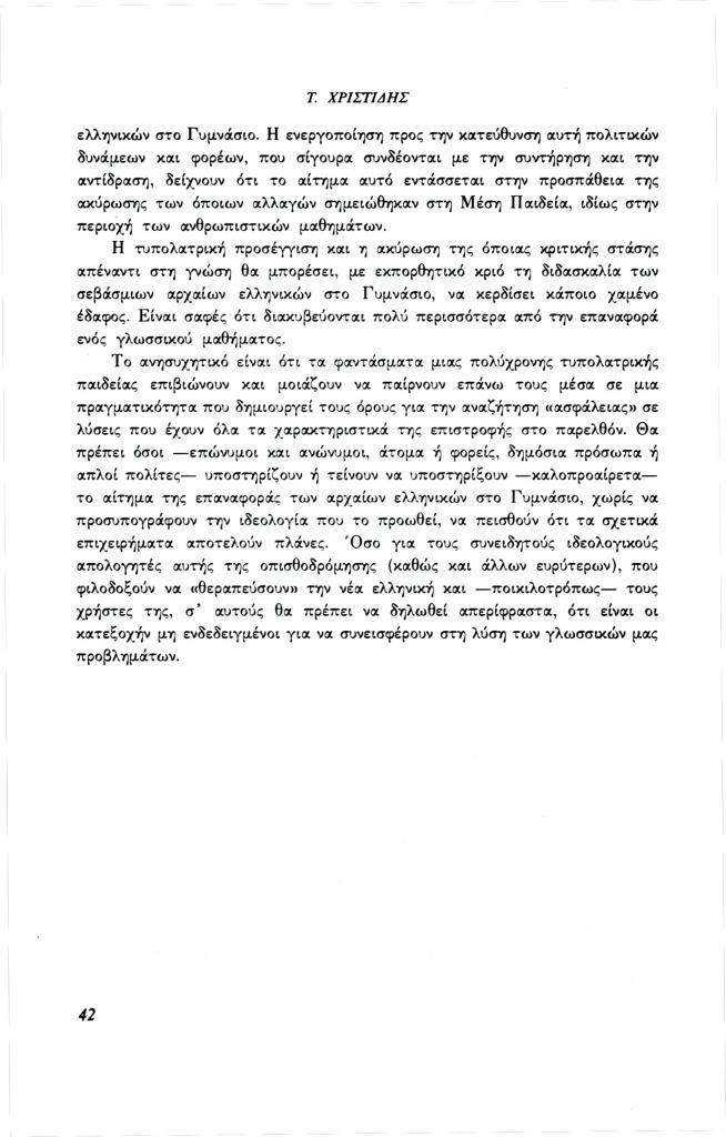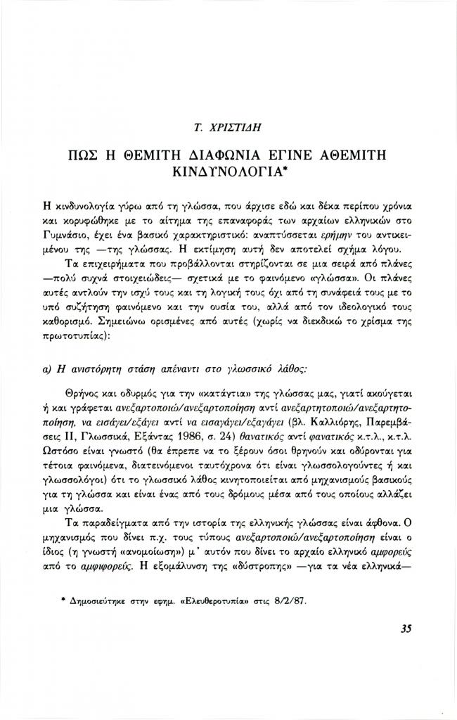 Χριστίδης Αναστάσιος-Φοίβος, «Πώς η θεμιτή διαφωνία έγινε αθέμιτη κινδυνολογία», Φιλόλογος, τχ. 47 (Άνοιξη 1987), σ. 35-42