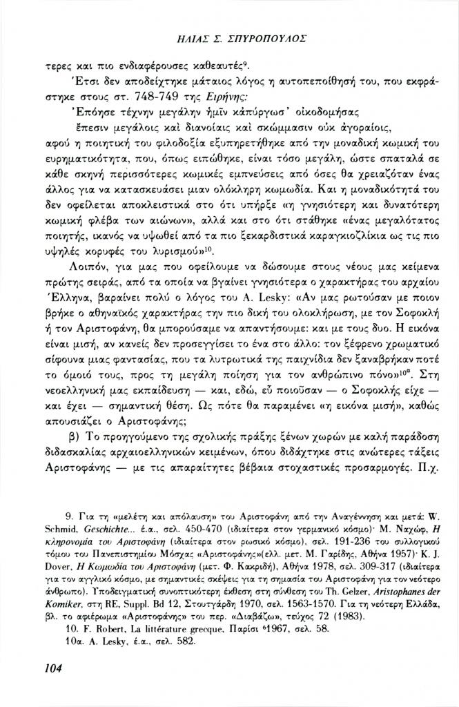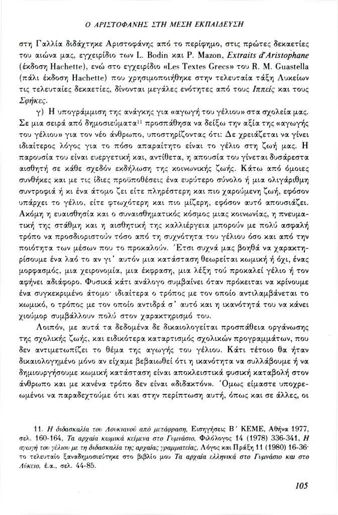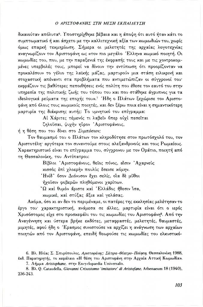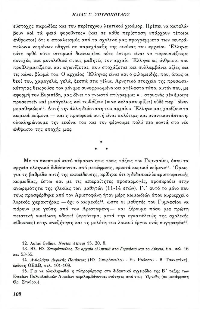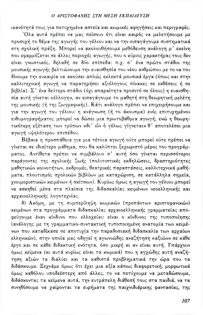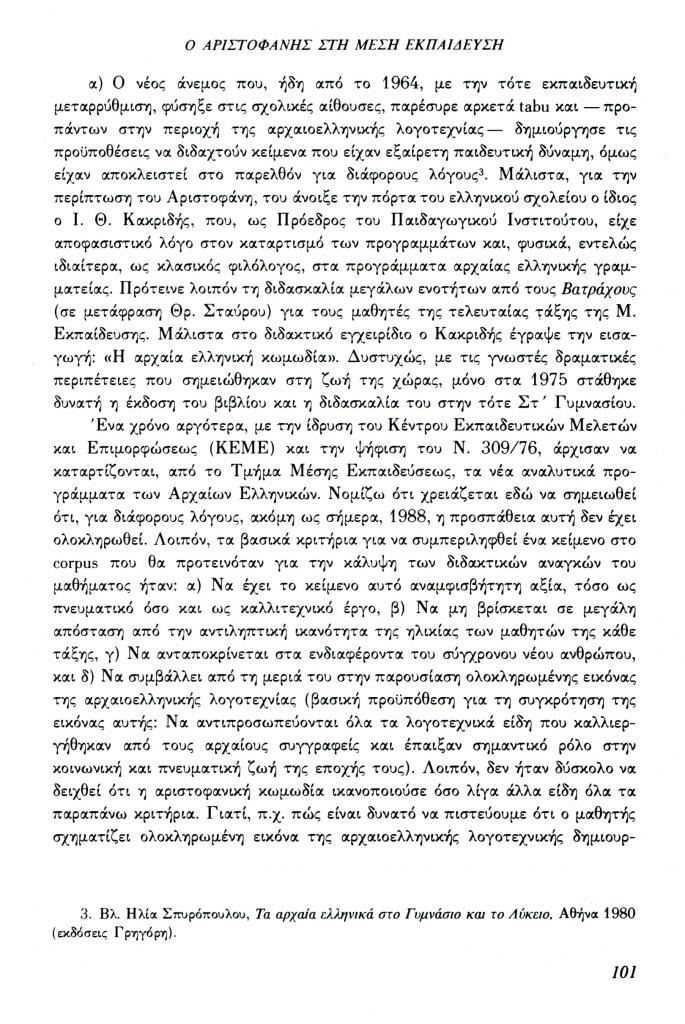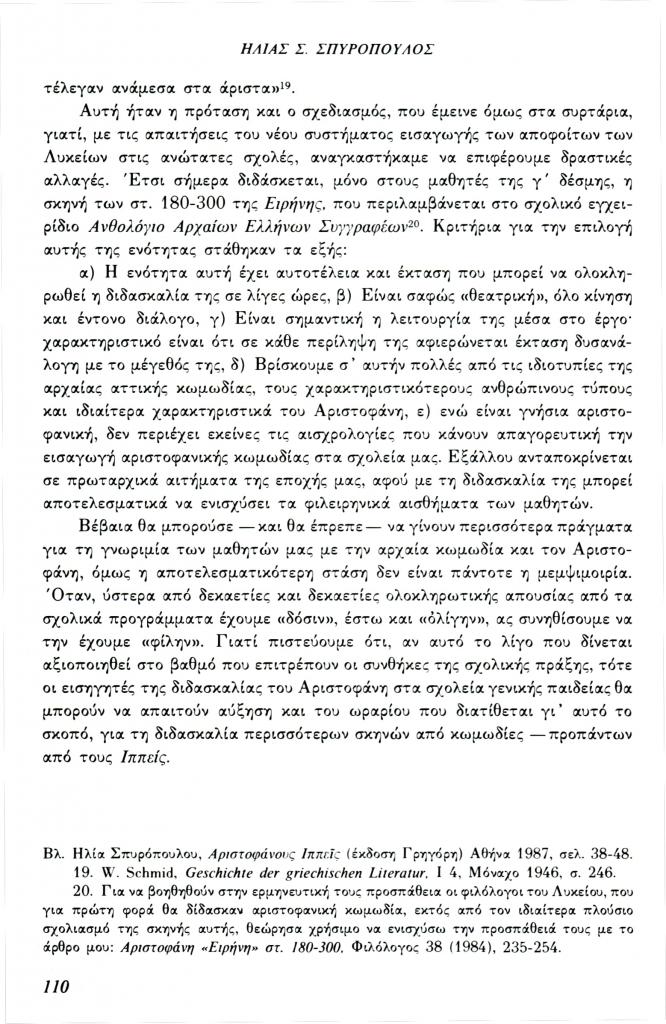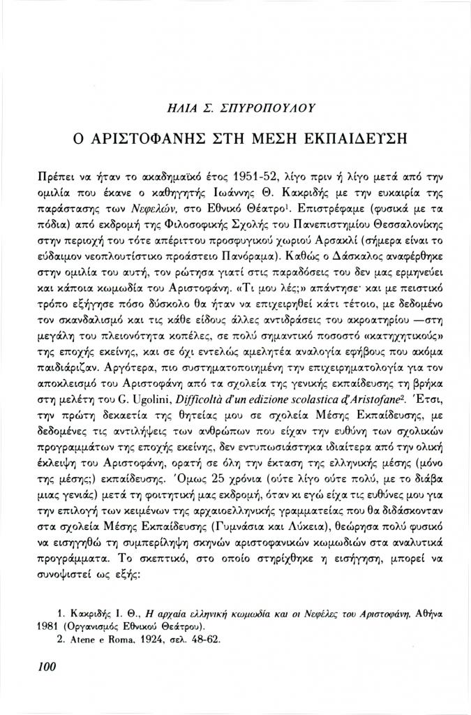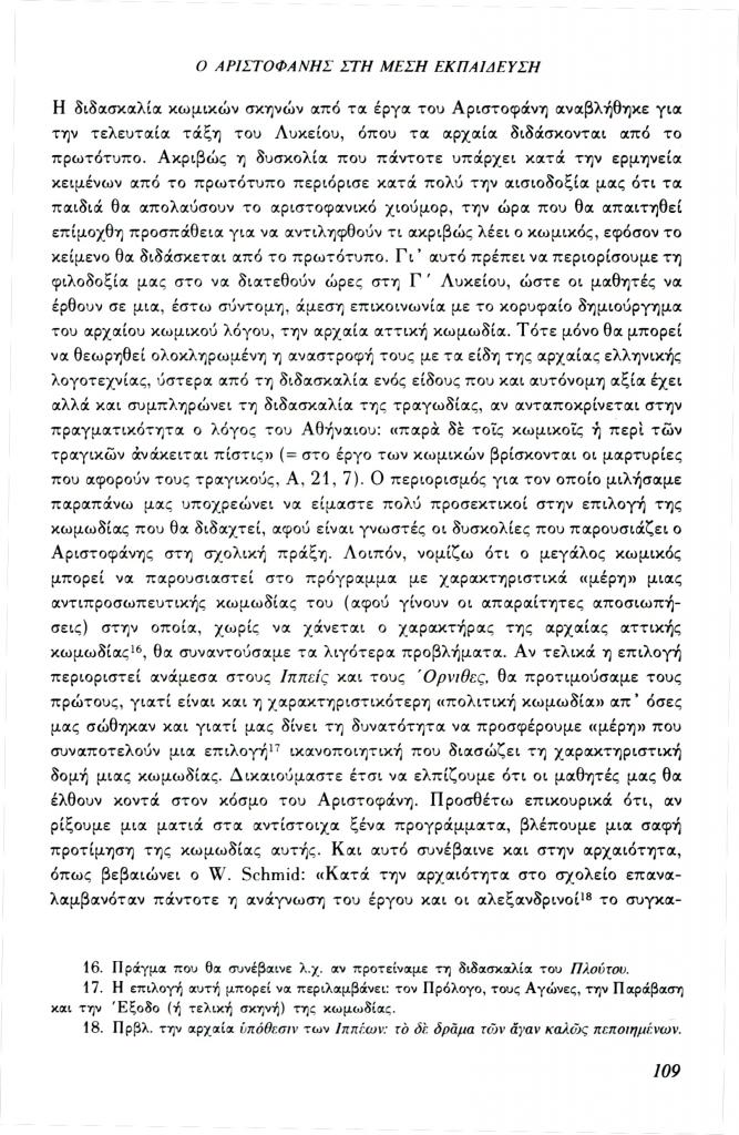 , «Ο Αριστοφάνης στη Μέση Εκπαίδευση»,