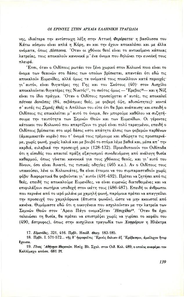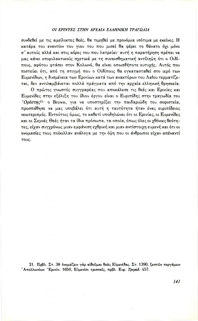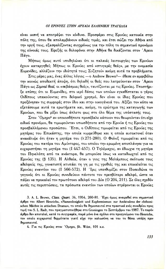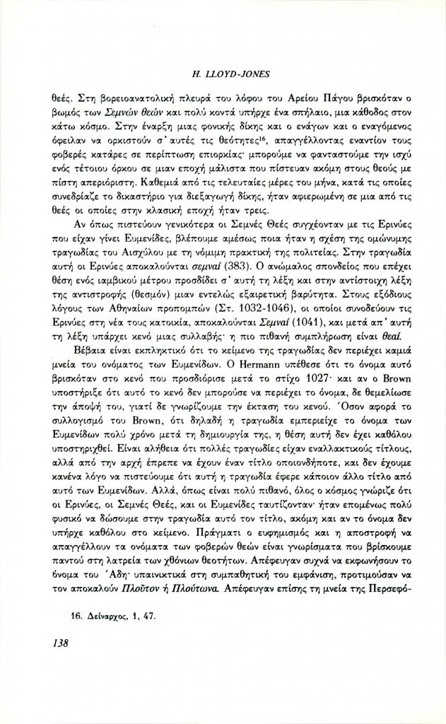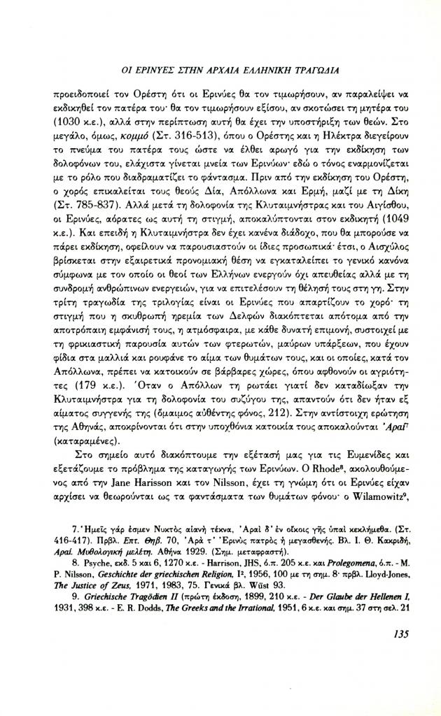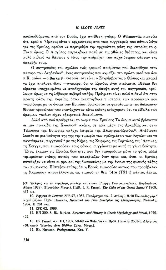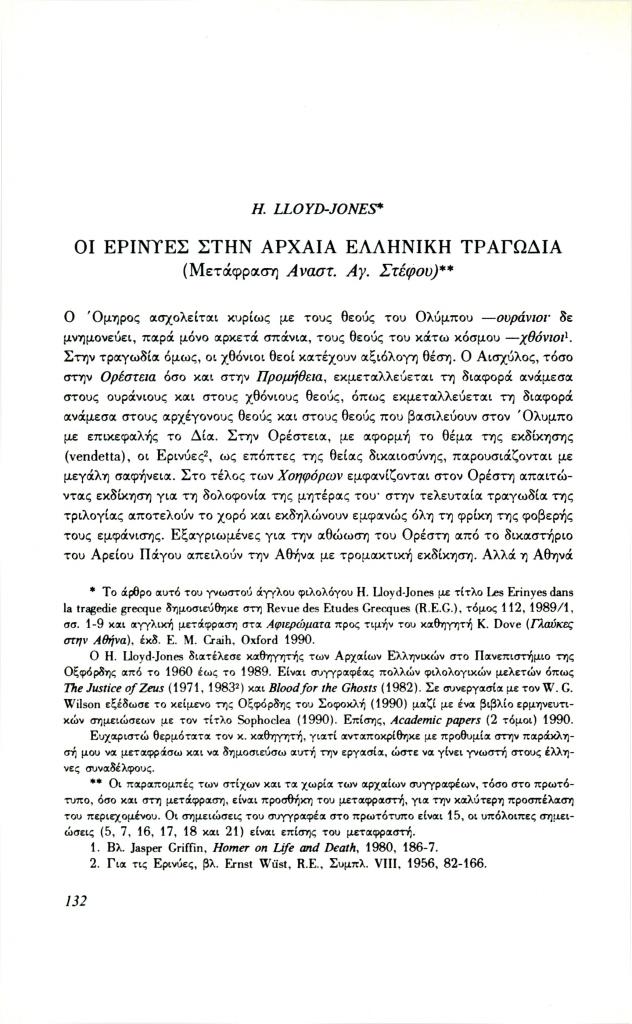Lloyd-Jones Hugh, «Οι Ερινύες στην αρχαία ελληνική τραγωδία», Φιλόλογος, τχ. 64 (Καλοκαίρι 1991), σ. 132-141