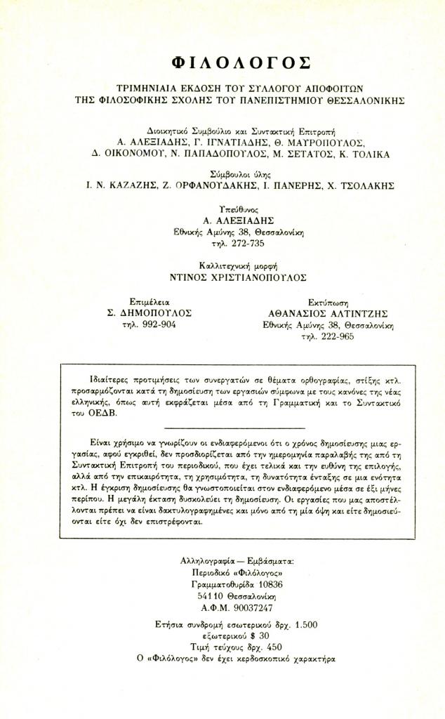 «#», Φιλόλογος, τχ. 65 (Φθινόπωρο 1991), σ. (εσώφυλλο)