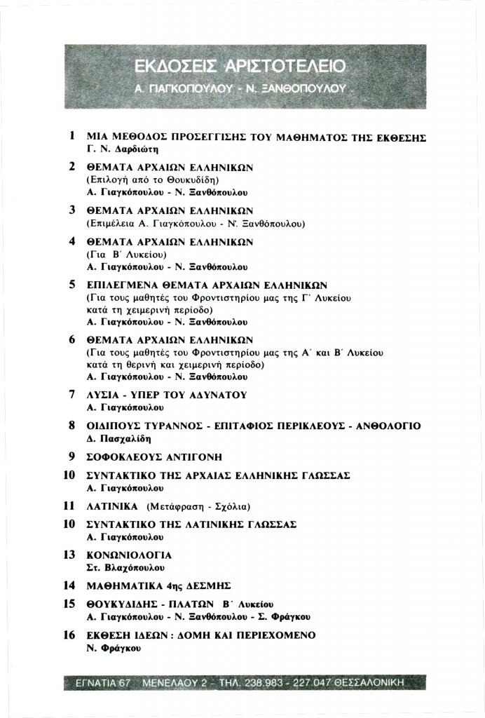 «Εκδόσεις Αριστοτέλειο Α. Γιαγκόπουλου – Ν. Ξανθόπουλου»,