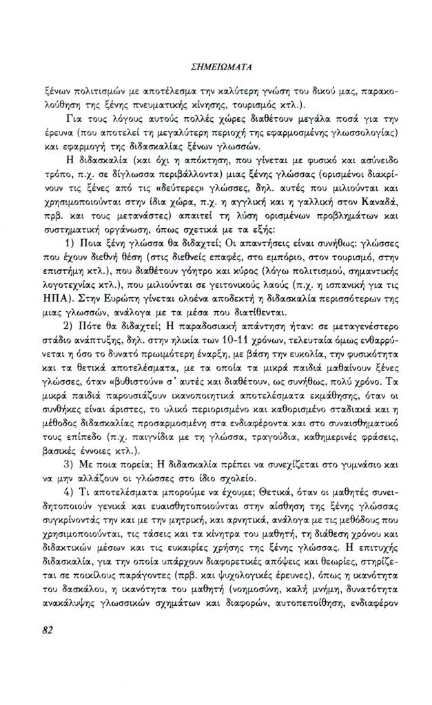 (ανυπόγραφο), «Σημειώματα. Η διδασκαλία ξένων γλωσσών στην πρωτοβάθμια και δευτεροβάθμια εκπαίδευση», Φιλόλογος, τχ. 68 (Καλοκαίρι 1992), σ. 81-82
