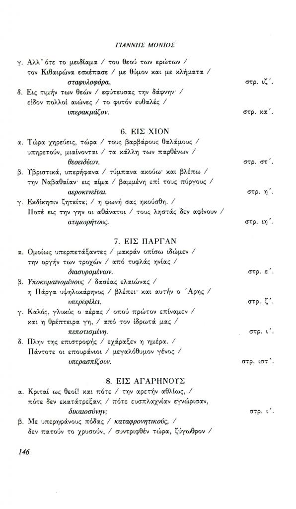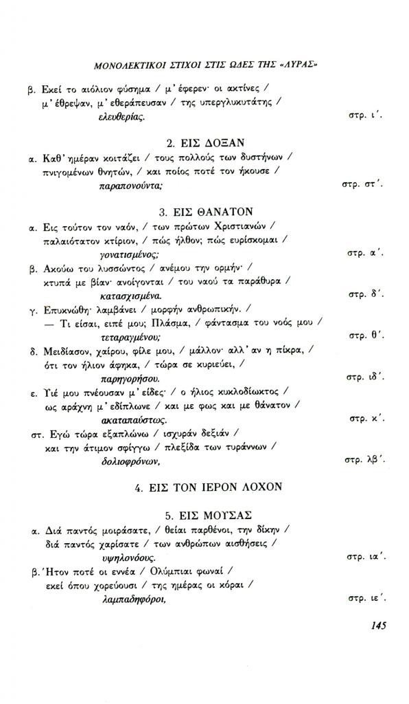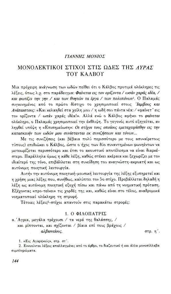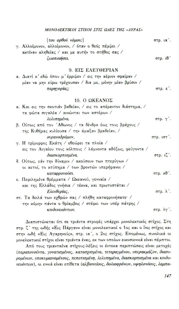 , «Μονολεκτικοί στίχοι στις ωδές της