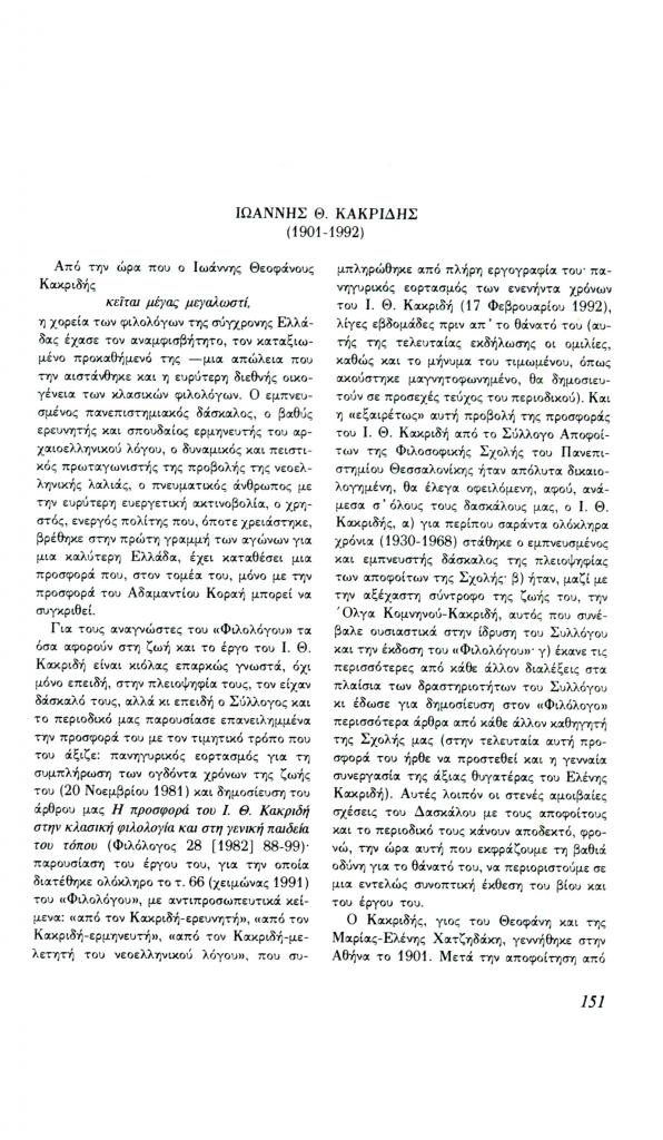 , «Ιωάννης Θ. Κακριδής (1901-1992)»,