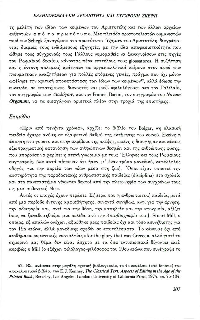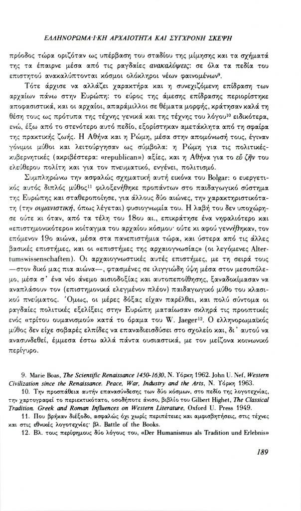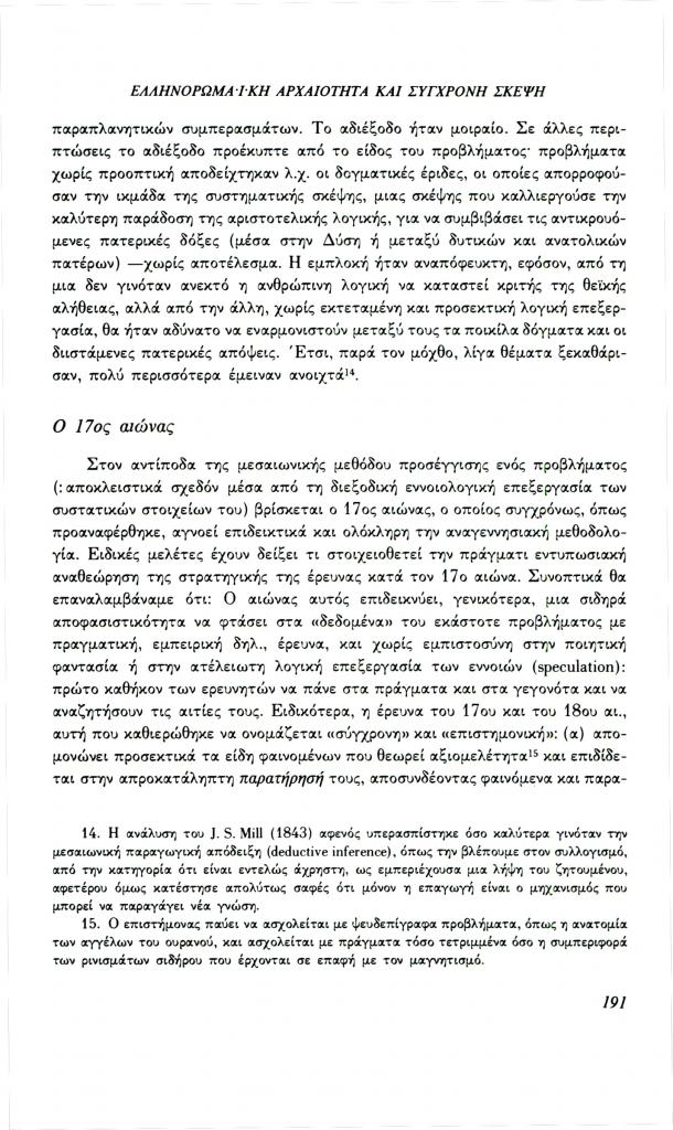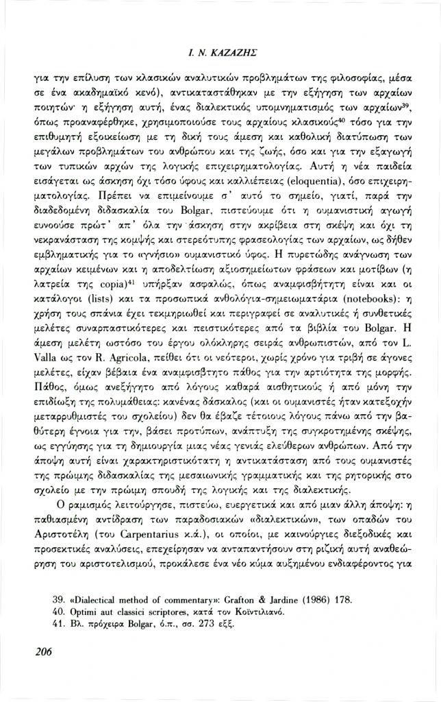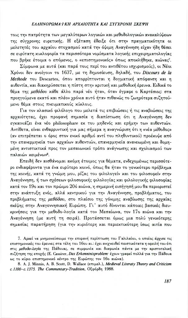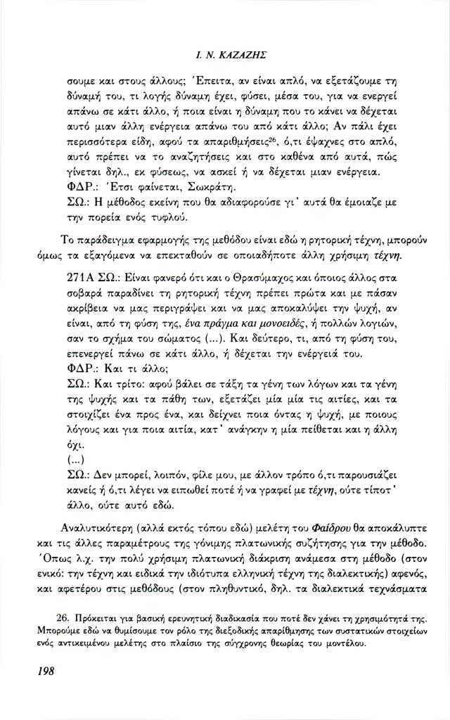 Καζάζης Ιωάννης Ν., «Ελληνορωμαϊκή αρχαιότητα και σύγχρονη σκέψη: Το πρόβλημα της μεθόδου», Φιλόλογος, τχ. 69 (Φθινόπωρο 1992), σ. 185-209
