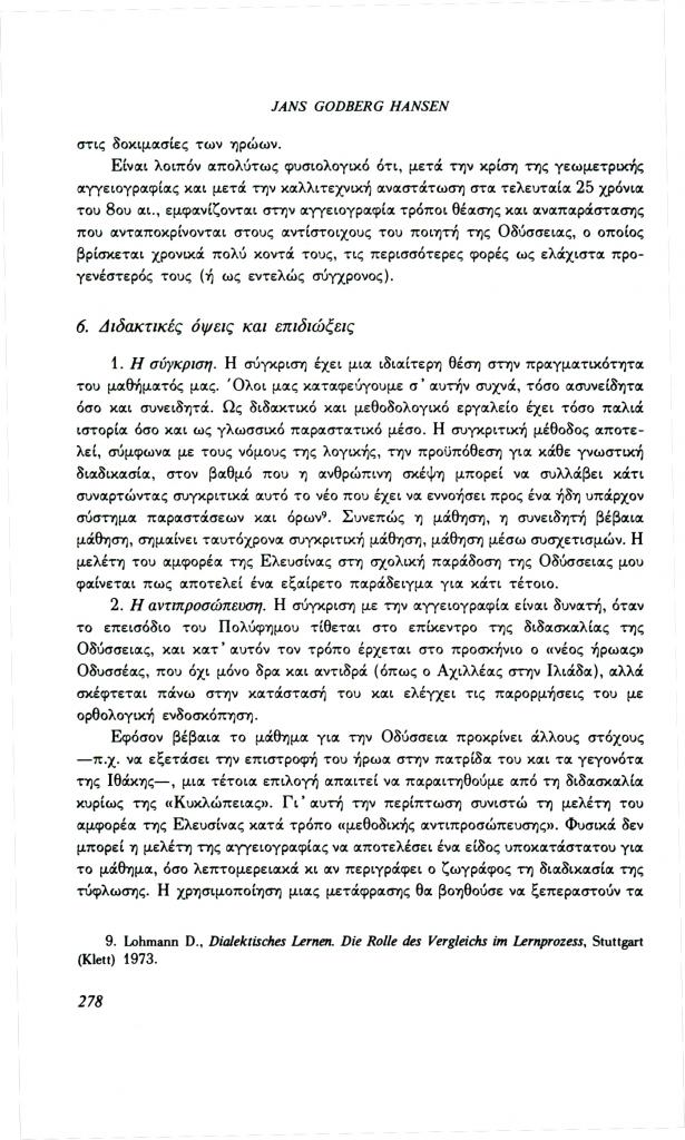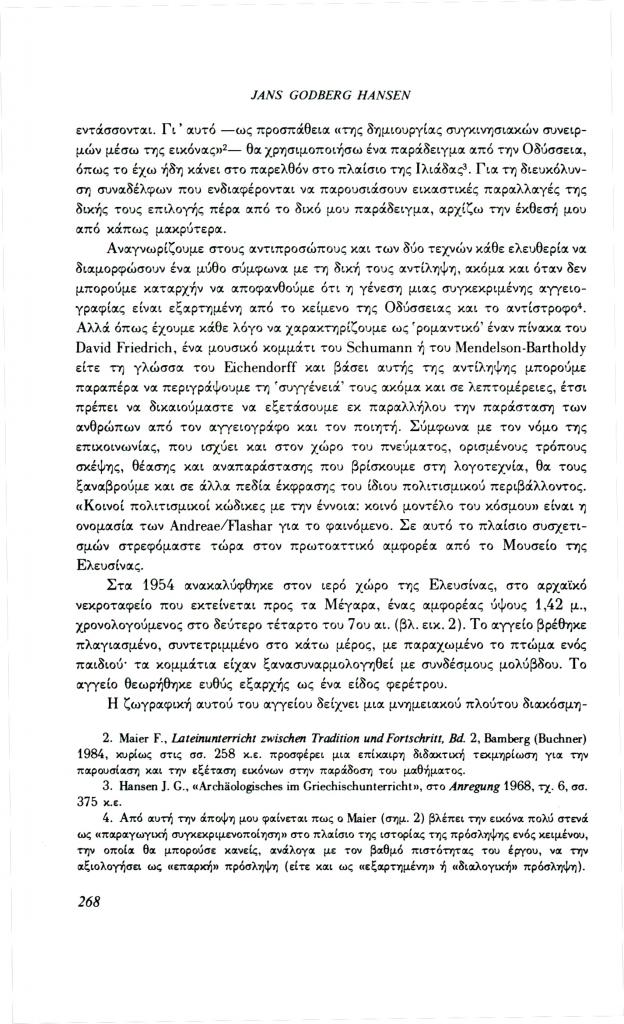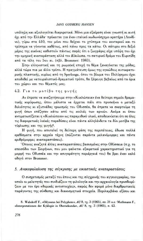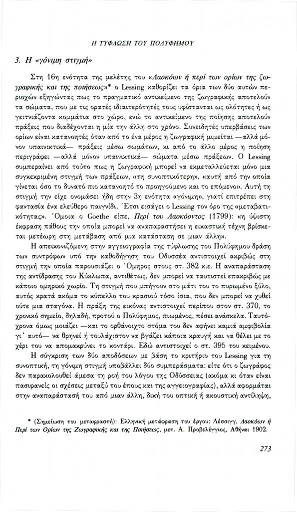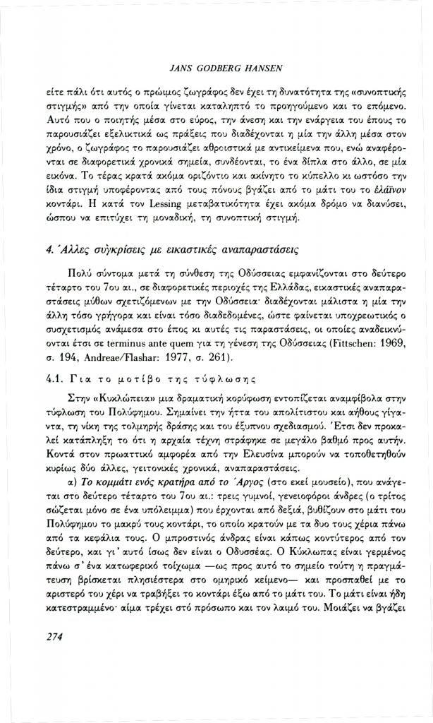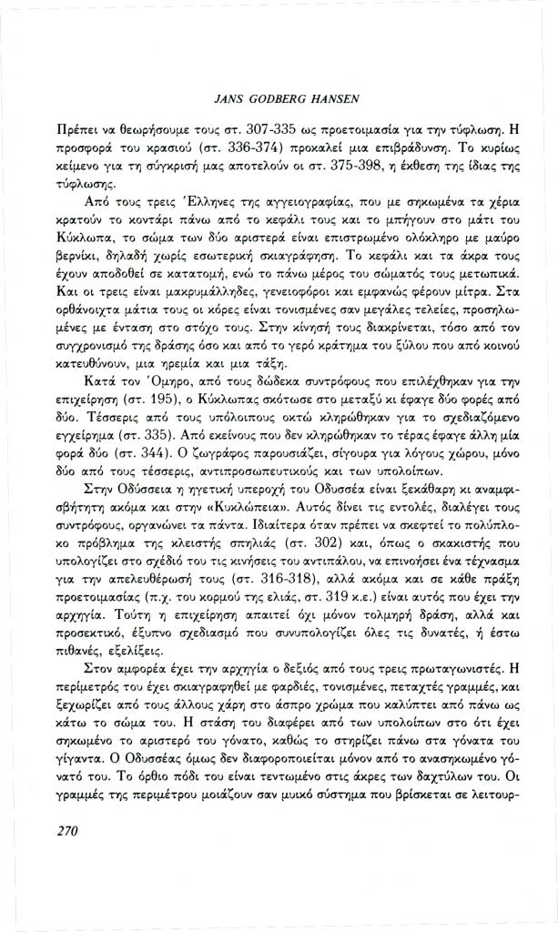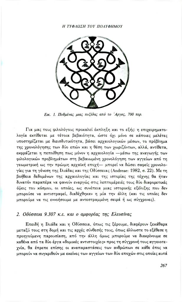 , «Η τύφλωση του Πολύφημου. Ένα παράδειγμα για τη λειτουργία της εικόνας στο μάθημα των αρχαίων ελληνικών», Φιλόλογος, τχ. 70 (Χειμώνας 1992), σ. 264-280