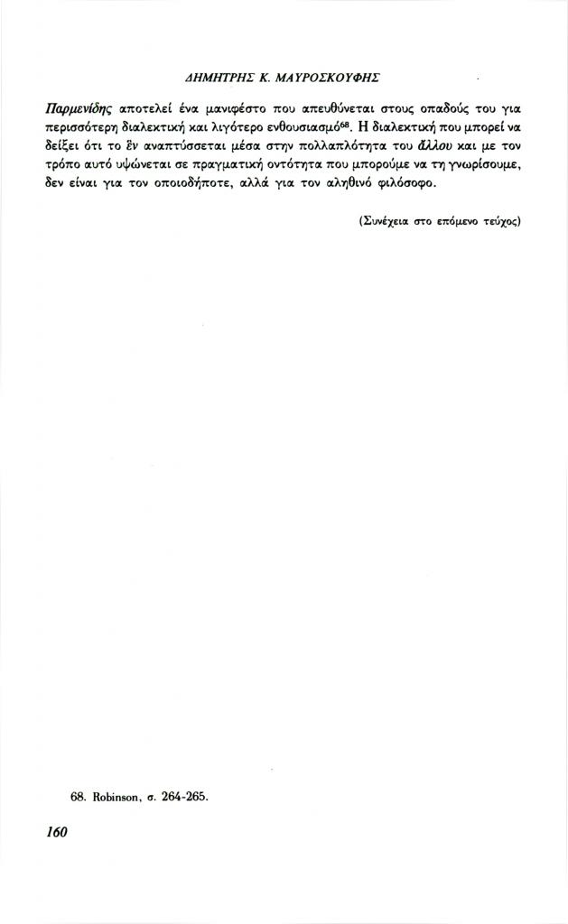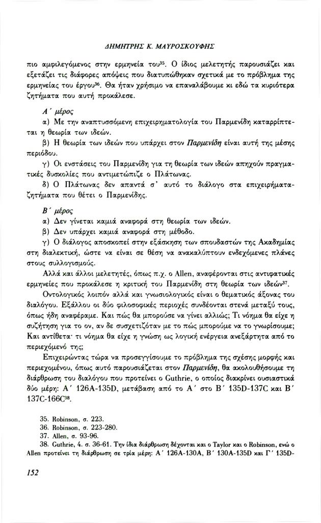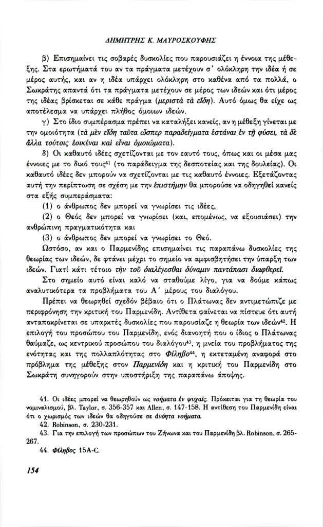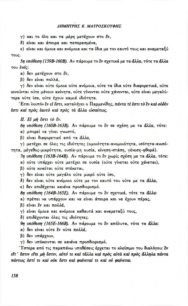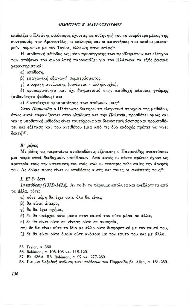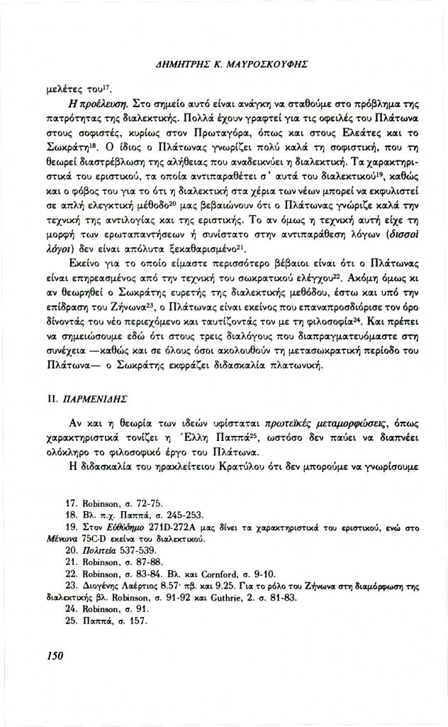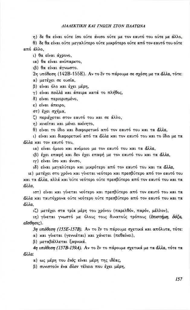 , «Διαλεκτική και γνώση στον Πλάτωνα. Σχέση μορφής και περιεχομένου στα πλαίσια της διαλεκτικής (Παρμενίδης, Θεαίτητος, Σοφιστής)», Φιλόλογος, τχ. 72 (Καλοκαίρι 1993), σ. 148-160