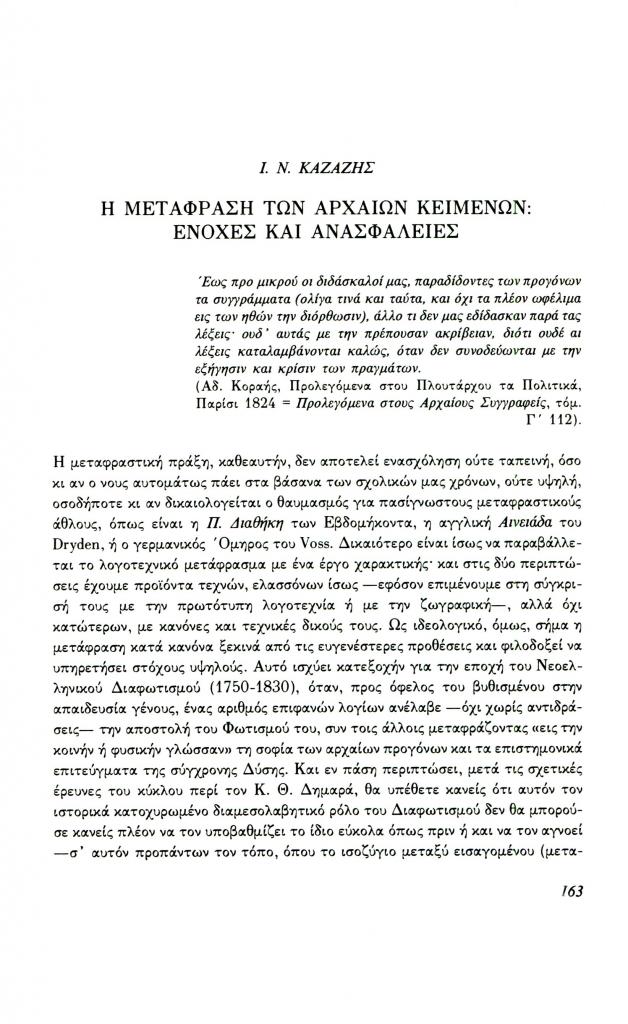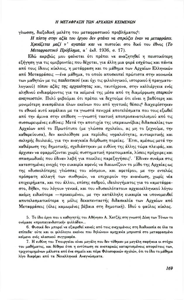 , «Η μετάφραση των αρχαίων κειμένων: Ενοχές και ανασφάλειες»,