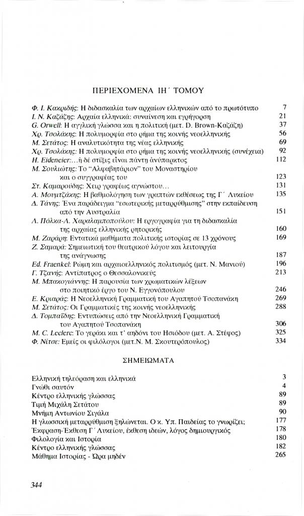 «Περιεχόμενα ΙΗ΄ τόμου»,