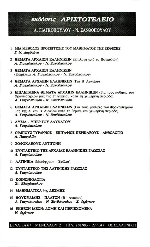 «Εκδόσεις Αριστοτέλειο Α. Γιαγκόπουλου – Ν. Ξανθόπουλου»,