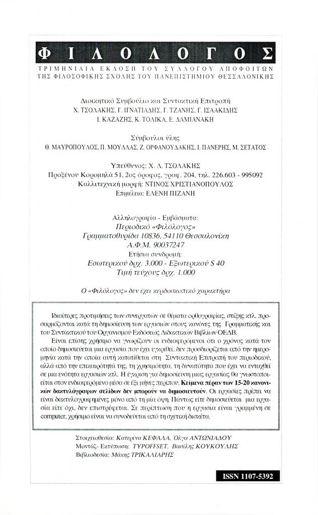 (Άνοιξη 1997), σ. (εσώφυλλο)