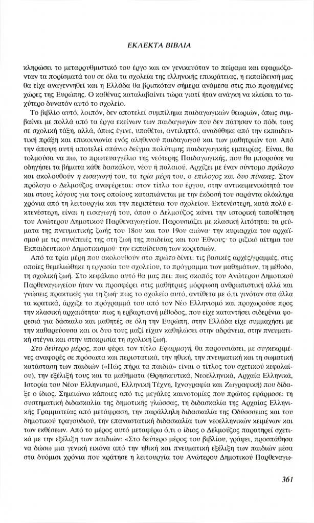 Τσολάκης Χρίστος Λ., «Εκλεκτά βιβλία. Αλέξανδρου Δελμούζου, Το Κρυφό Σκολειό, 1908-1911. Αθήνα 1950», Φιλόλογος, τχ. 89 (Φθινόπωρο 1997), σ. 360-364