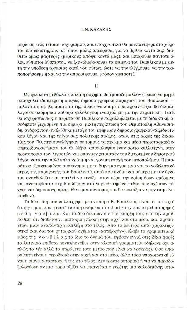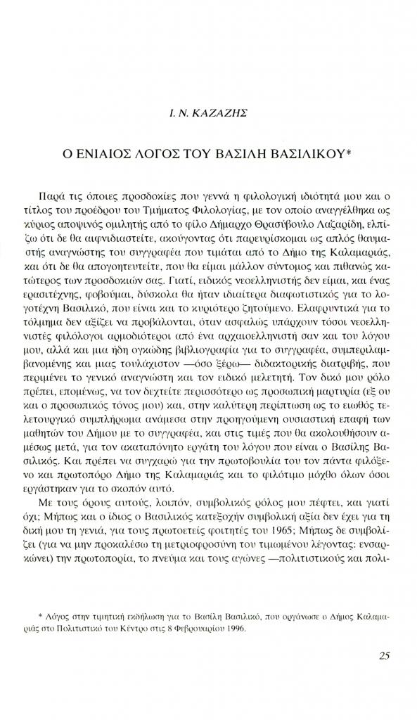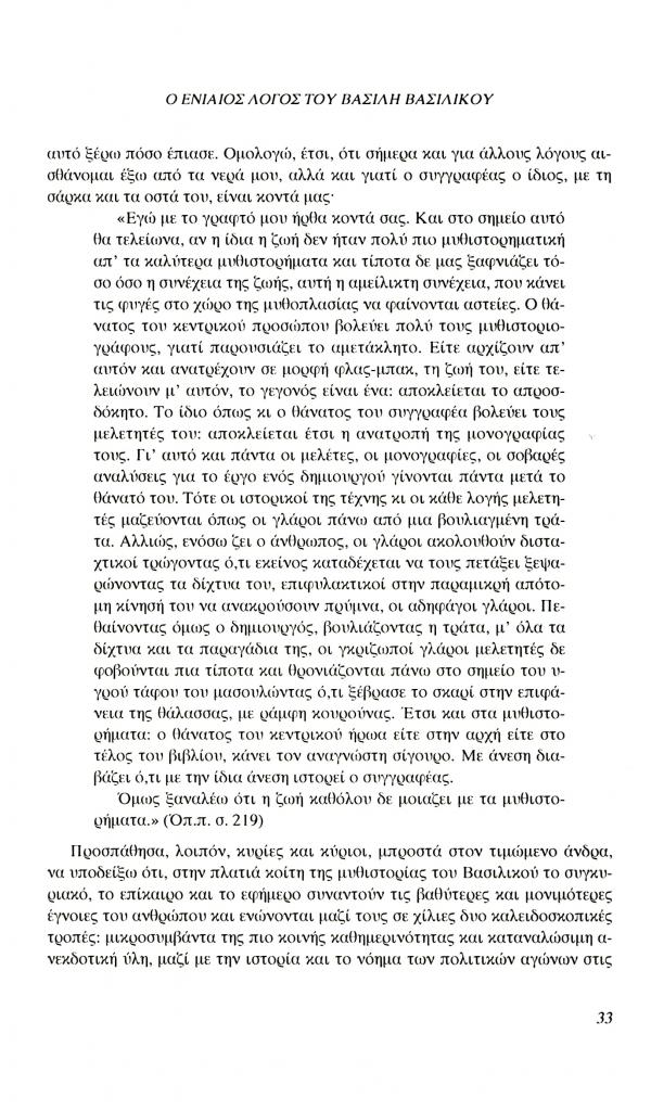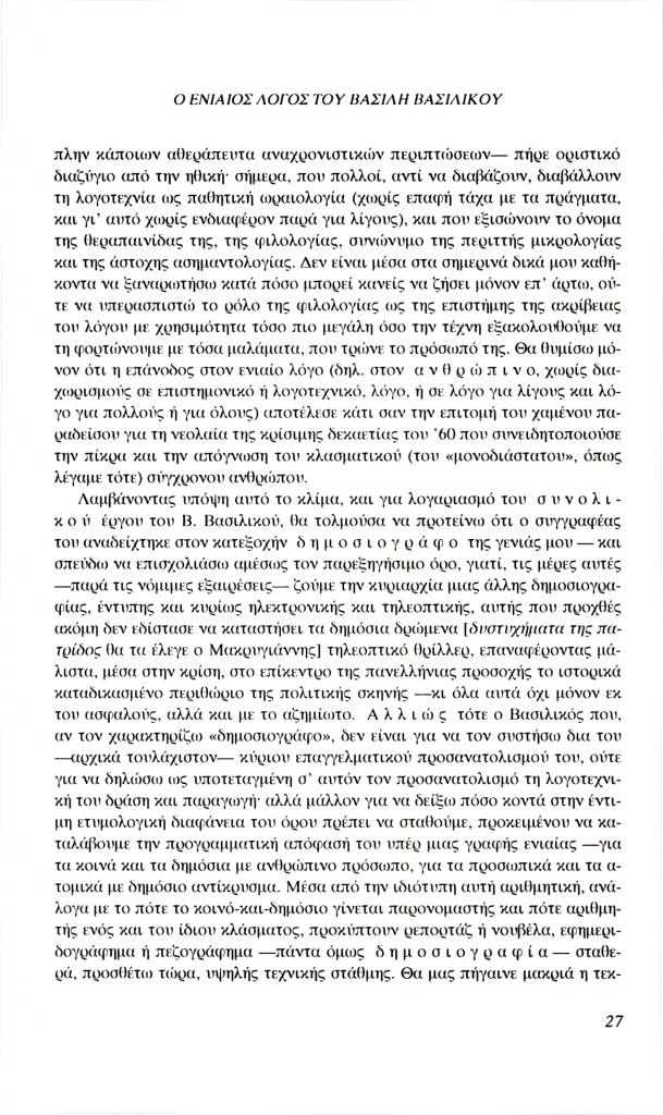 , «Ο ενιαίος λόγος του Βασίλη Βασιλικού»,