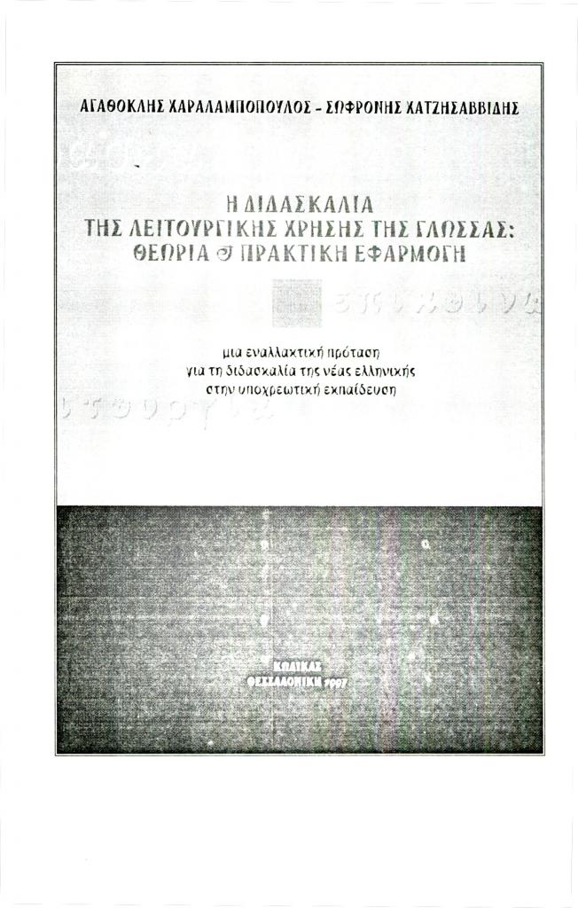 «Αγαθοκλής Χαραλαμπόπουλος – Σωφρόνης Χατζησαββίδης, Η διδασκαλία της λειτουργικής χρήσης της γλώσσας: Θεωρία και πρακτική εφαρμογή, Κώδικας, Θεσ/νίκη 1997», Φιλόλογος, τχ. 92 (Καλοκαίρι 1998), σ. 235