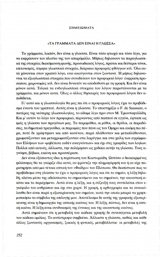 , «Σημειώματα. Τα γράμματα δεν είναι η γλώσσα»,