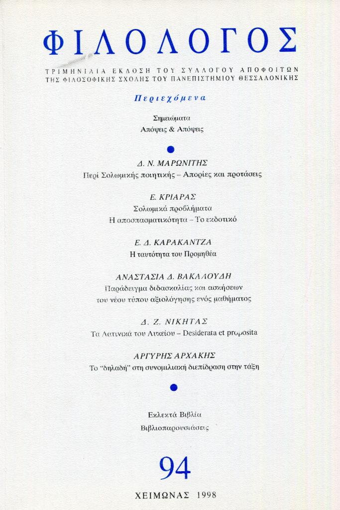(Χειμώνας 1998), σ. (εξώφυλλο)