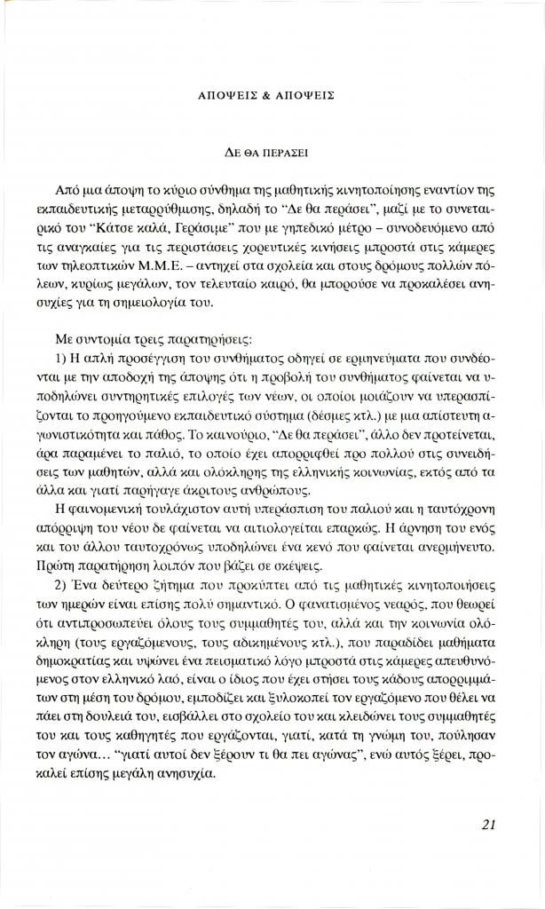 , «Απόψεις και απόψεις. Δε θα περάσει»,