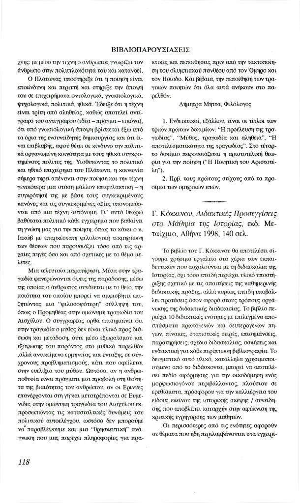 , «Βιβλιοπαρουσιάσεις. Δανιήλ Ι. Ιακώβ, Η ποιητική της αρχαίας ελληνικής τραγωδίας. Αθήνα: ΜΙΕΤ, 1998», Φιλόλογος, τχ. 95 (Άνοιξη 1999), σ. 117-118