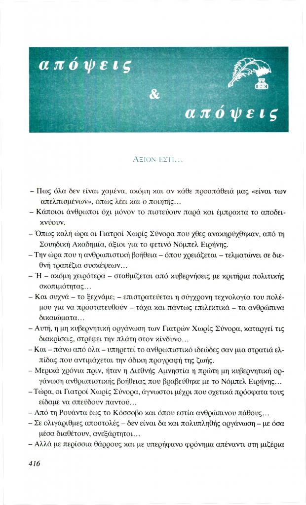 , «Απόψεις και απόψεις. Άξιον εστί…»,