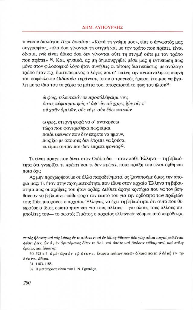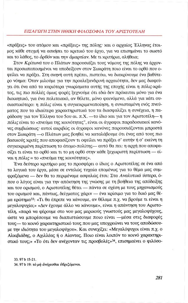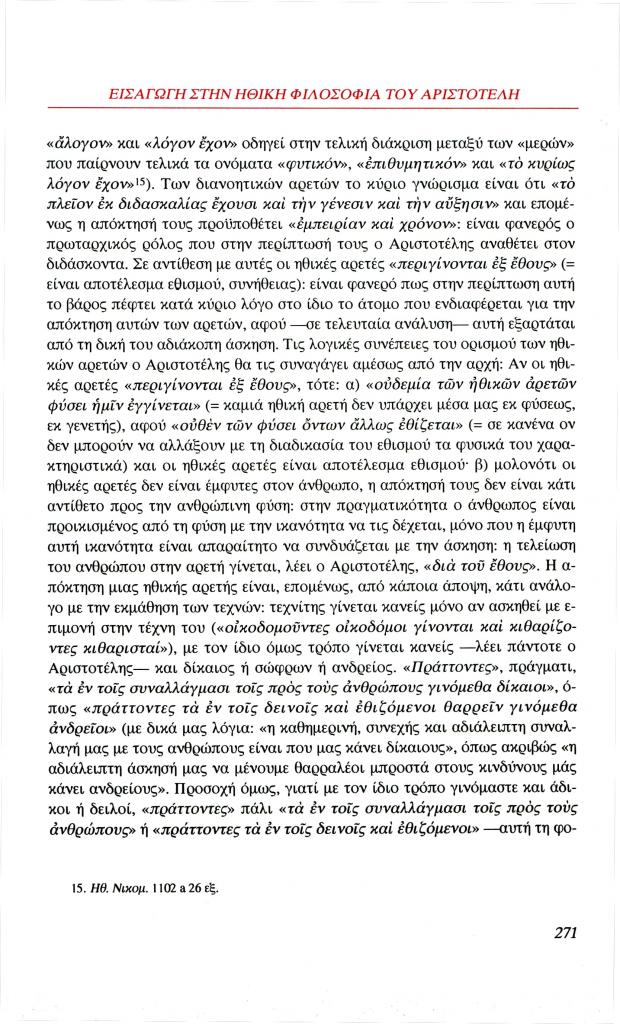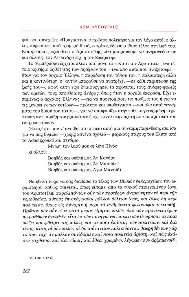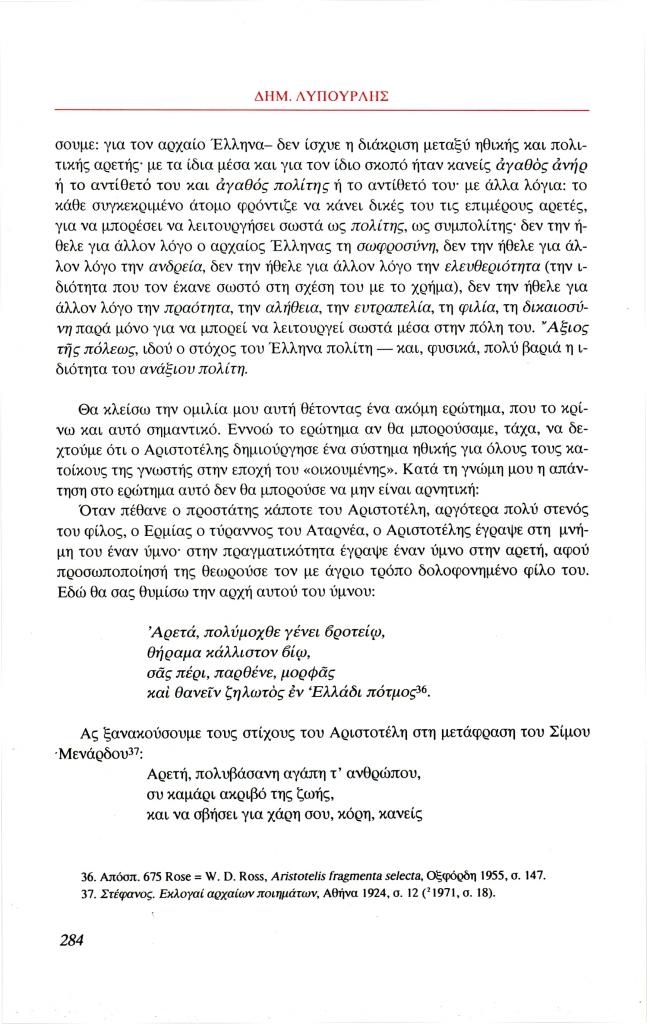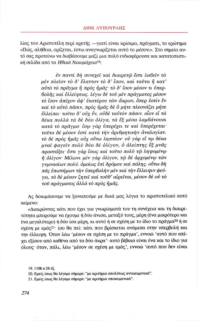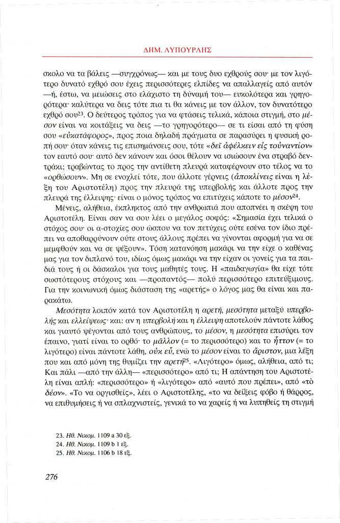 Λυπουρλής Δημήτρης Δ., «Εισαγωγή στην ηθική φιλοσοφία του Αριστοτέλη. Ο Αριστοτέλης μιλάει για την αρετή», Φιλόλογος, τχ. 100 (Καλοκαίρι 2000), σ. 266-286