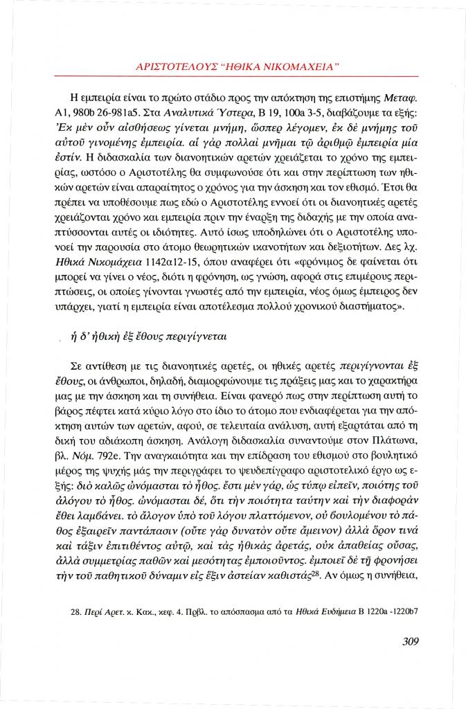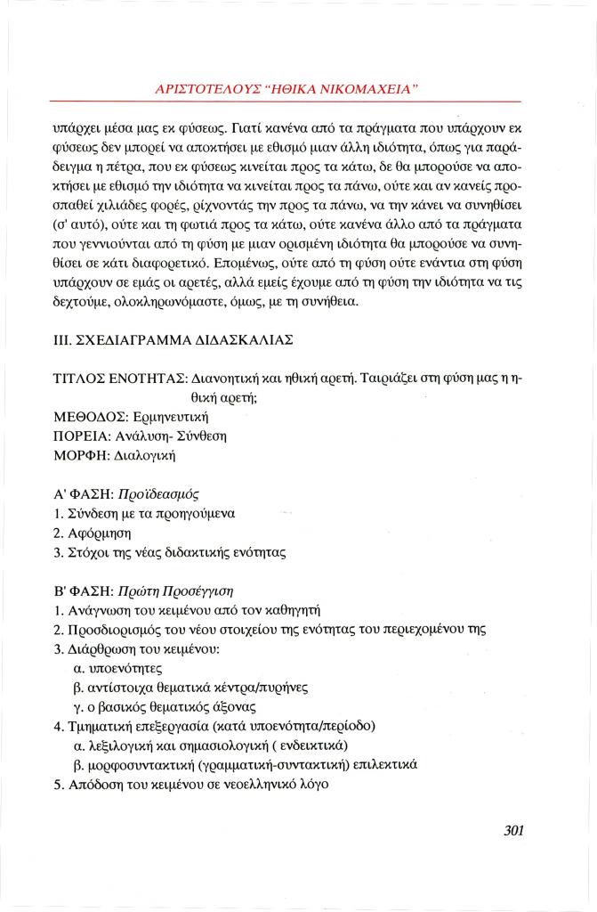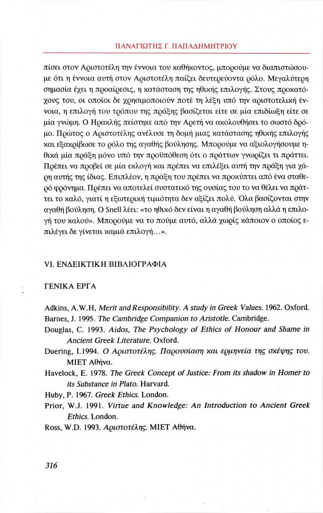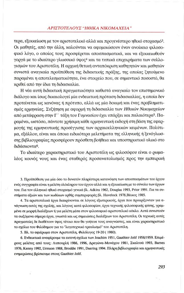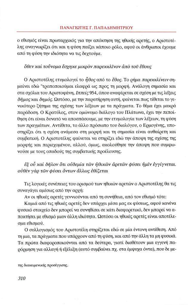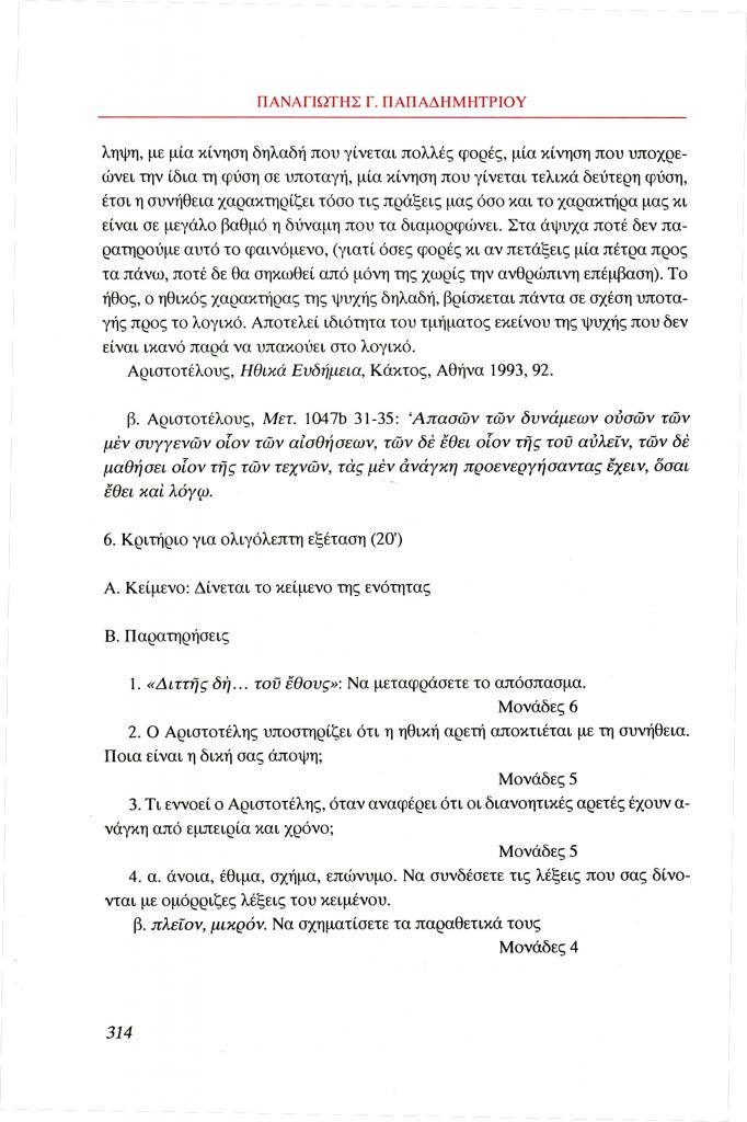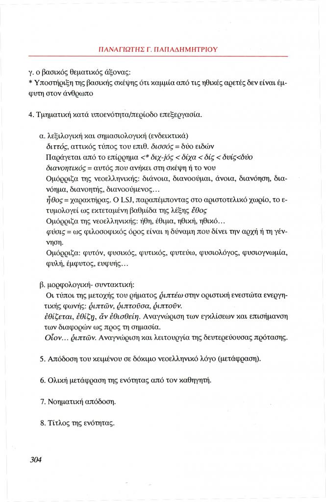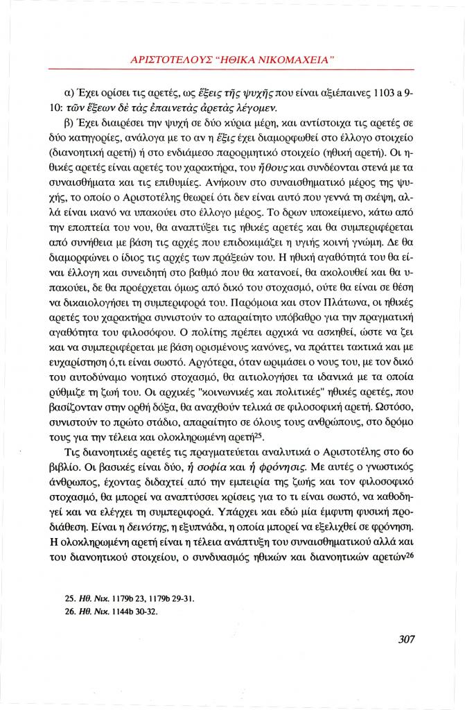 Παπαδημητρίου Παναγιώτης Γ., «Αριστοτέλους Ηθικά Νικομάχεια. Ενότητα: Β 1, 1-3 (1103Α 14-26). Εισαγωγή στις έννοιες ευδαιμονία – αρετή στο πλαίσιο μιας ερμηνευτικής διδακτικής προσέγγισης», Φιλόλογος, τχ. 100 (Καλοκαίρι 2000), σ. 292-317