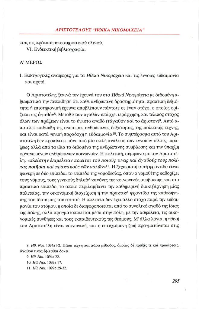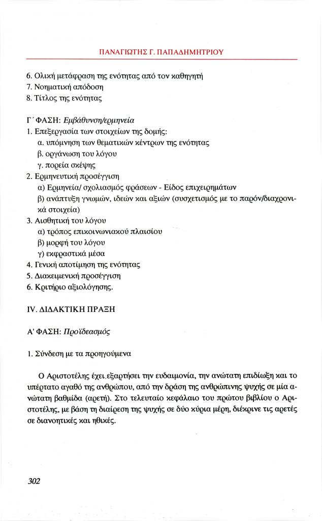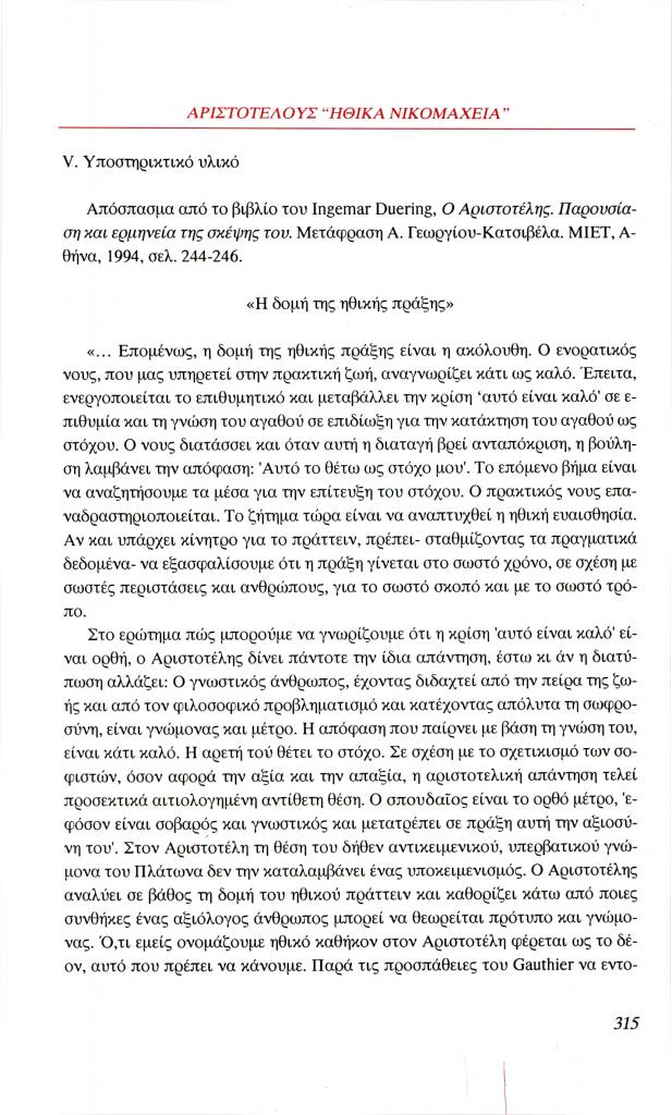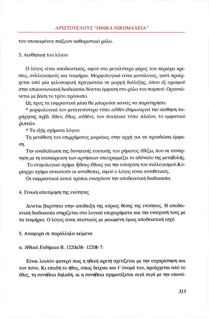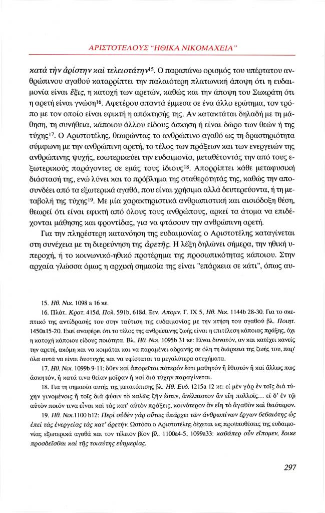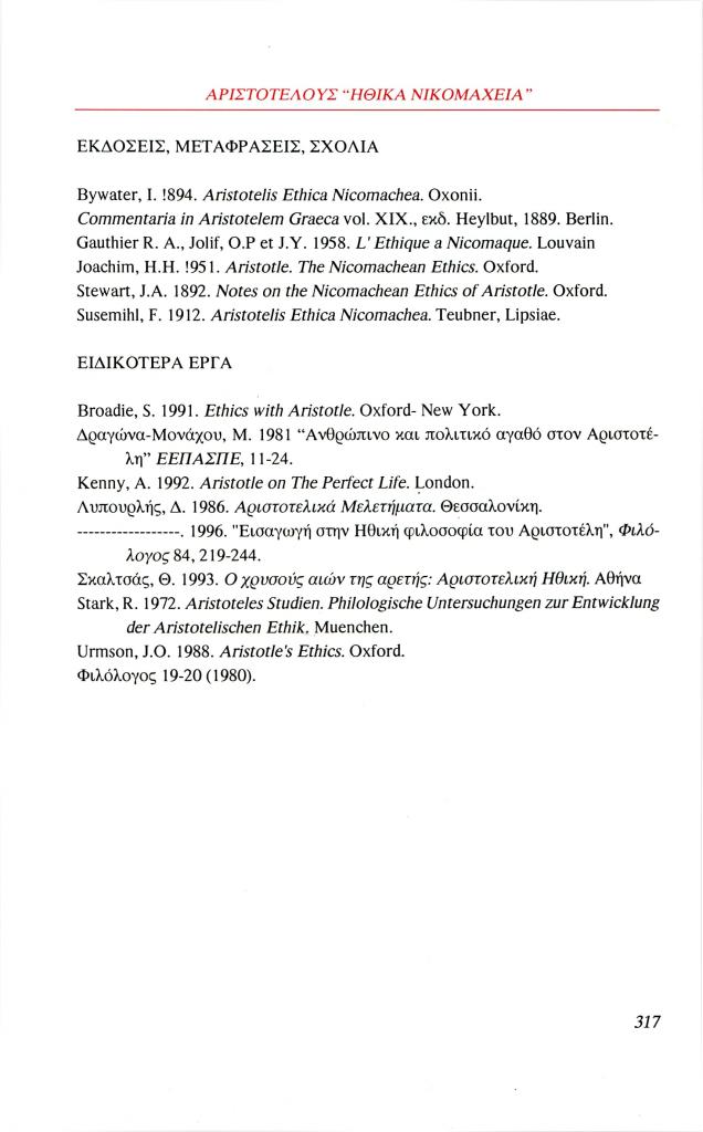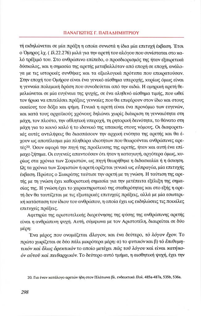 Παπαδημητρίου Παναγιώτης Γ., «Αριστοτέλους Ηθικά Νικομάχεια. Ενότητα: Β 1, 1-3 (1103Α 14-26). Εισαγωγή στις έννοιες ευδαιμονία – αρετή στο πλαίσιο μιας ερμηνευτικής διδακτικής προσέγγισης», Φιλόλογος, τχ. 100 (Καλοκαίρι 2000), σ. 292-317