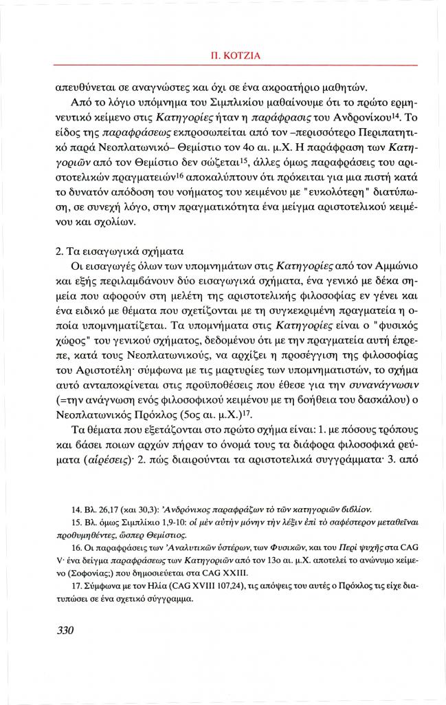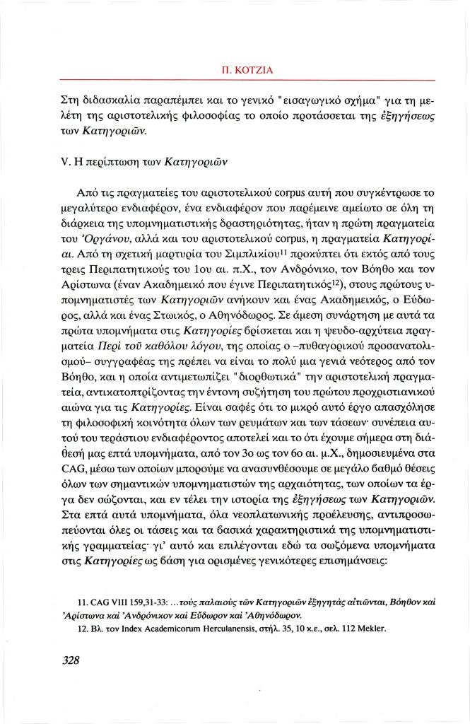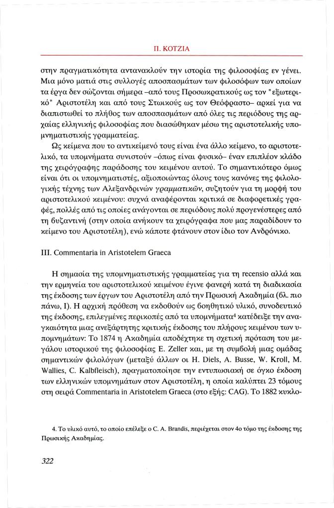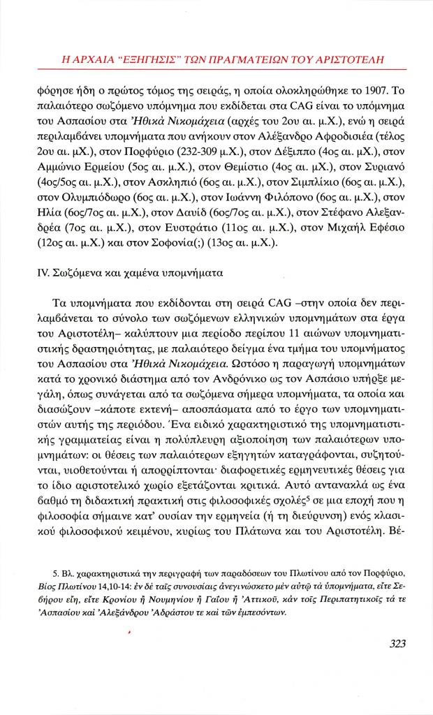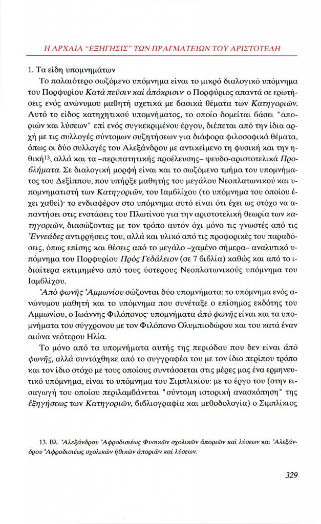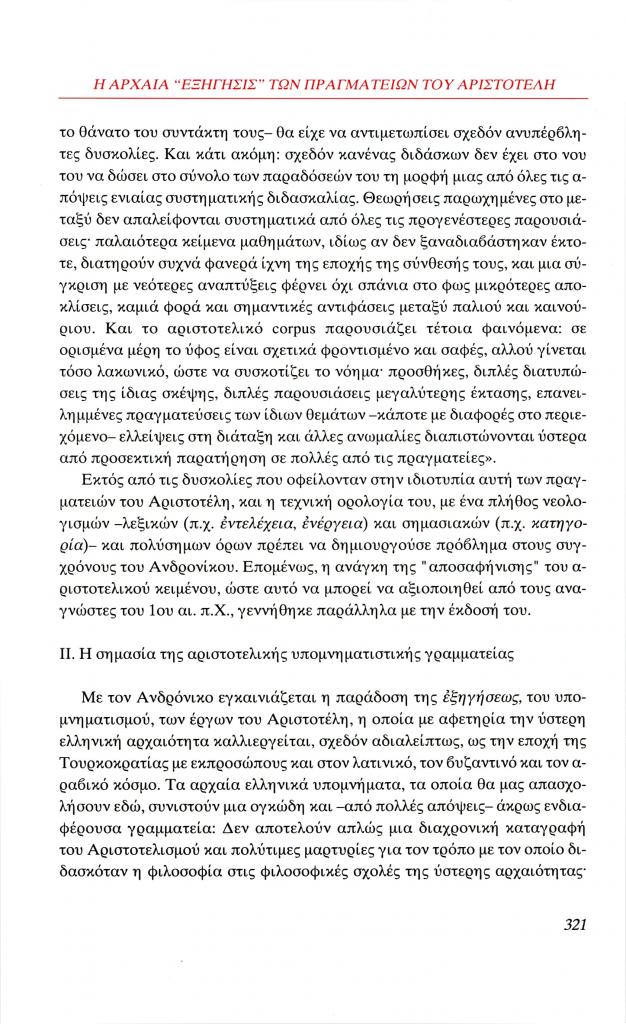 , «Η αρχαία εξήγησις των πραγματειών του Αριστοτέλη»,