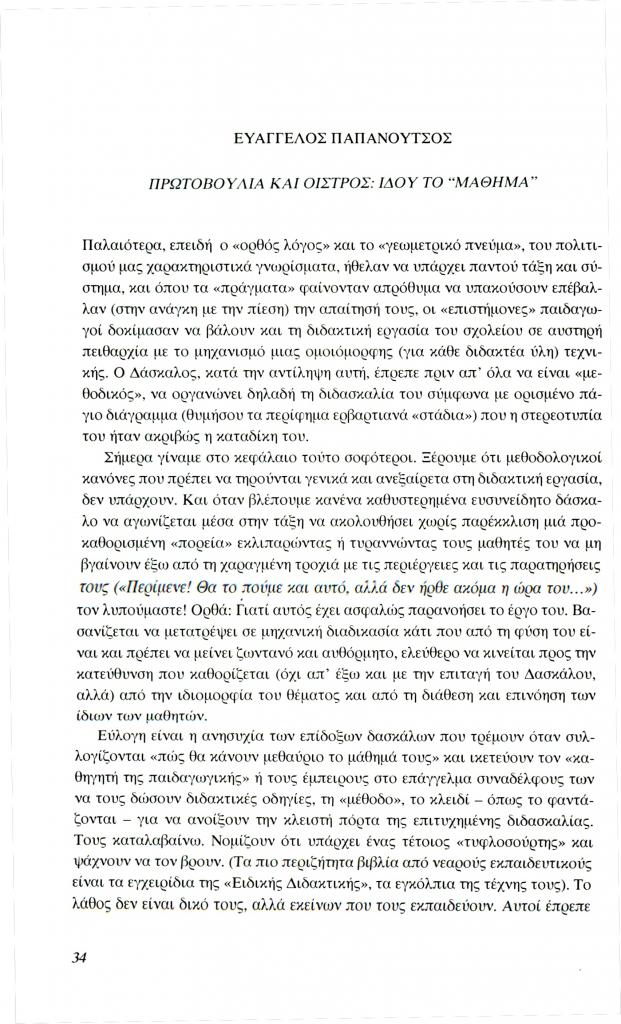 , «Πρωτοβουλία και οίστρος: Ιδού το μάθημα»,