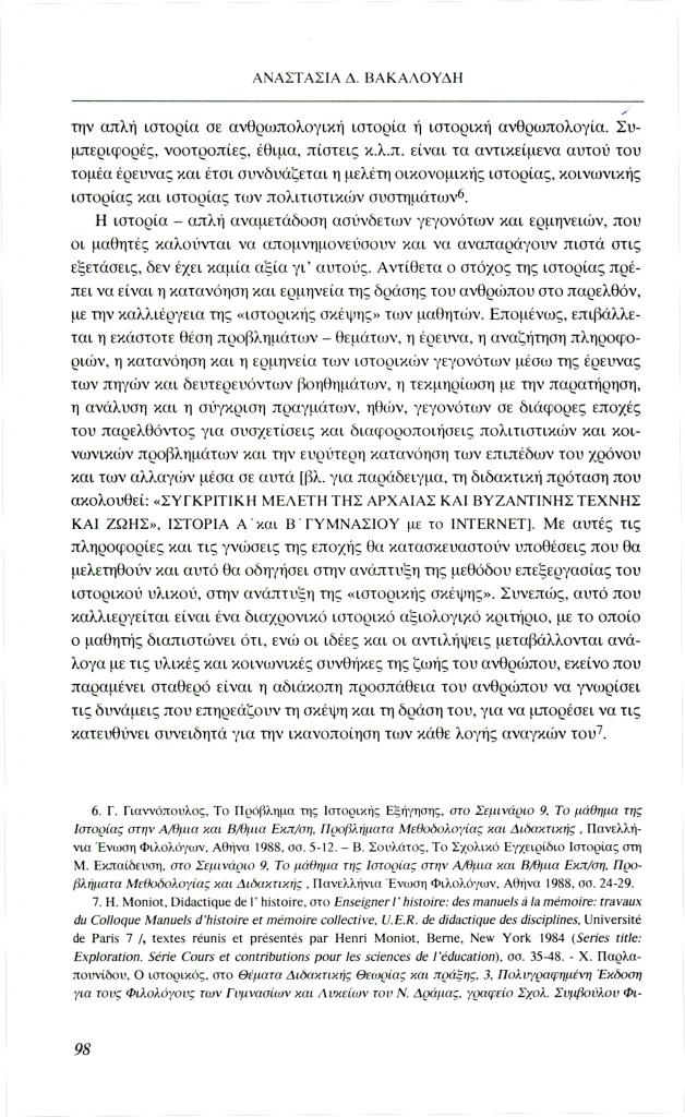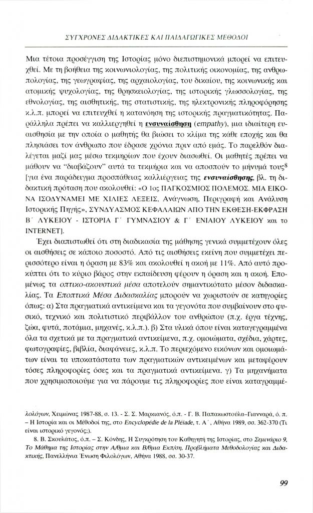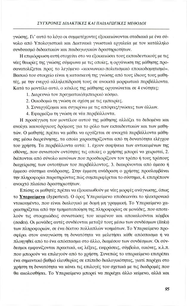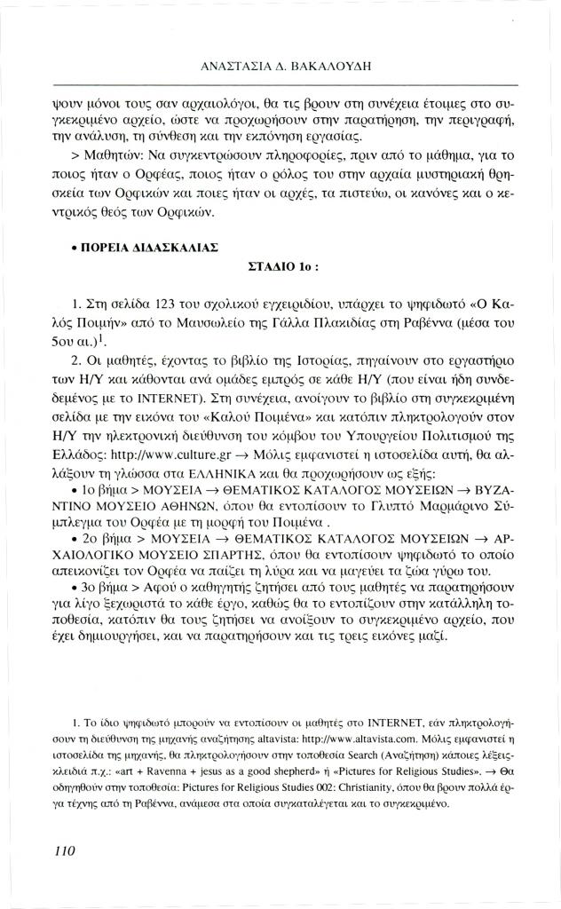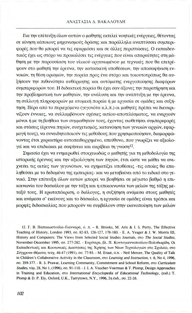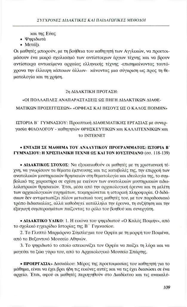 , «Σύγχρονες διδακτικές και παιδαγωγικές μέθοδοι. Η ουσιαστική συμβολή των νέων τεχνολογιών στην υλοποίησή τους με τρεις διδακτικές προτάσεις», Φιλόλογος, τχ. 103 (Άνοιξη 2001), σ. 94-117