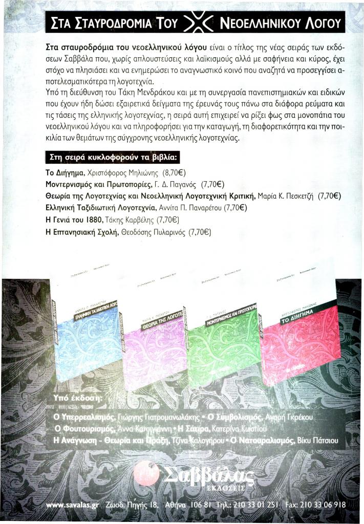 «Στα σταυροδρόμια του νεοελληνικού λόγου. Σαββάλας εκδόσεις»,
