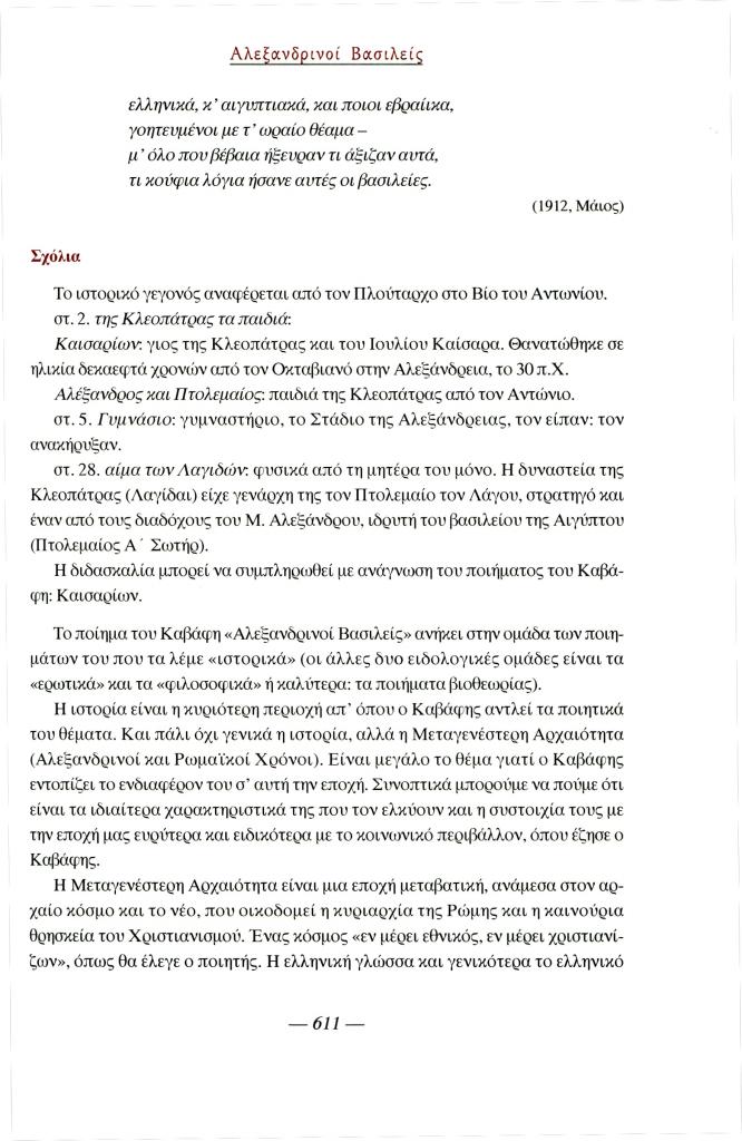 , «Άρθρα. Κ.Π. Καβάφης. Αλεξανδρινοί Βασιλείς»,