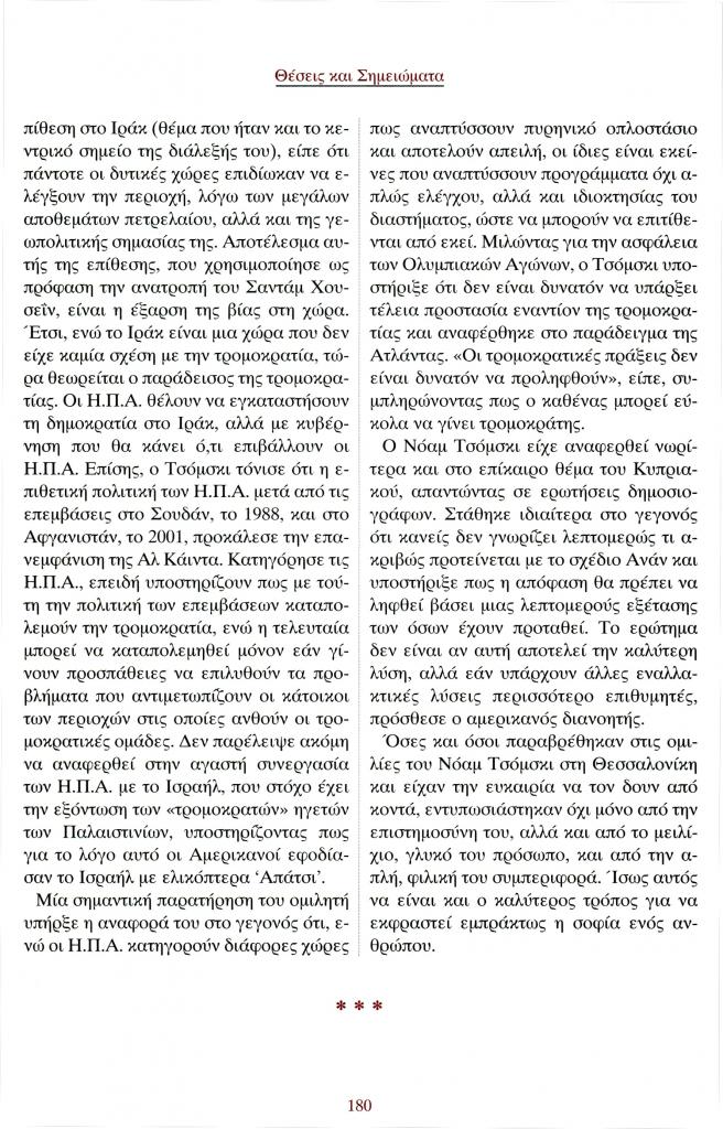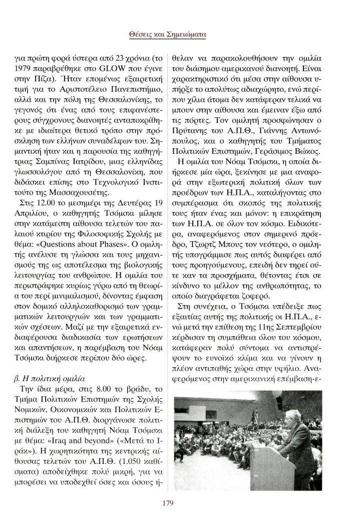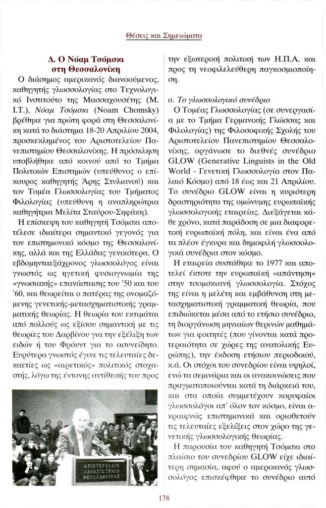 , «Θέσεις και σημειώματα. Δ. Ο Νόαμ Τσόμσκι στη Θεσσαλονίκη»,