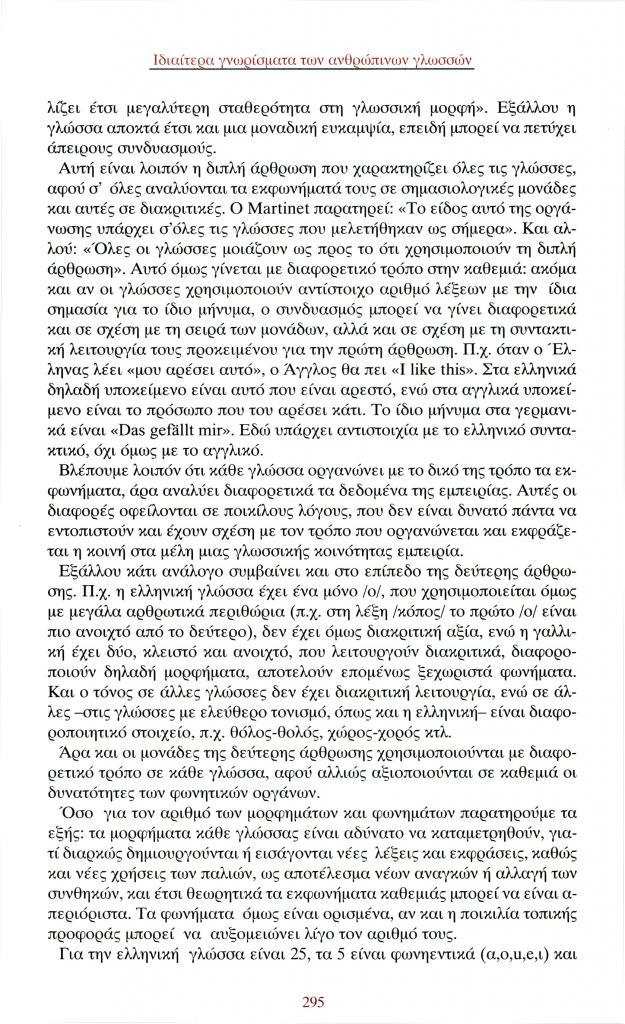 , «Άρθρα. Ιδιαίτερα γνωρίσματα των ανθρώπινων γλωσσών: Διπλή άρθρωση, παραδειγματικές και συνταγματικές σχέσεις», Φιλόλογος, τχ. 116 (Καλοκαίρι 2004), σ. 293-299