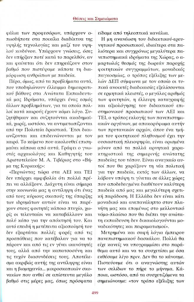, «Θέσεις και σημειώματα. Αλλιώς… βαρούν τα σήμαντρα ήτοι Ψυχή της Δημοκρατίας η Παιδεία. Και όλα αυτά γιατί…», Φιλόλογος, τχ. 118 (Χειμώνας 2004), σ. 498-500