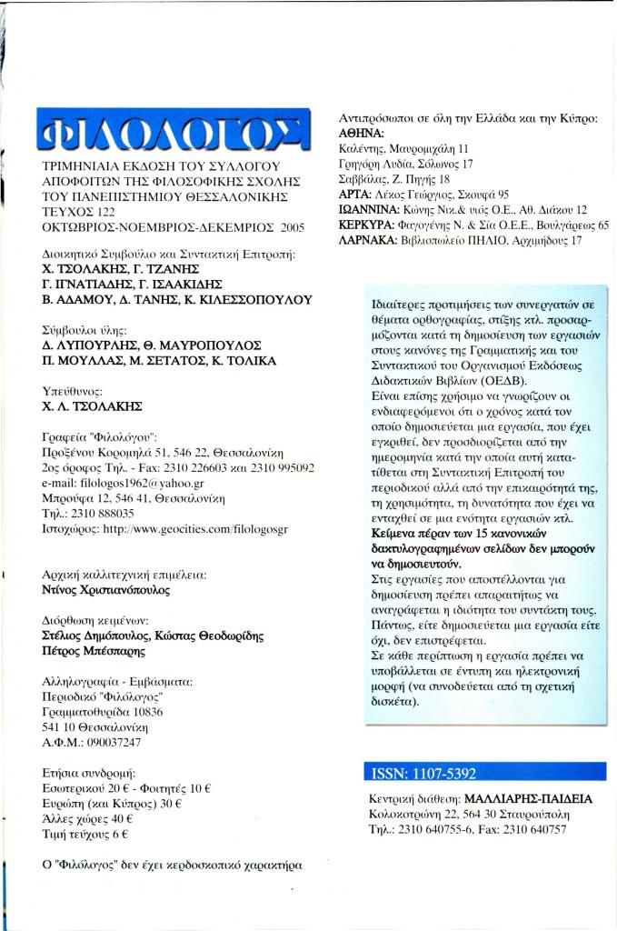 (Ιανουάριος-Φεβρουάριος-Μάρτιος 2006), σ. (εσώφυλλο)