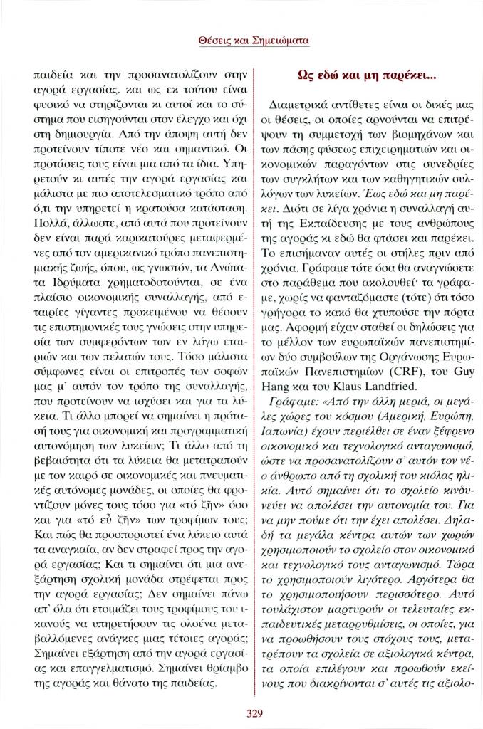 , «Θέσεις και σημειώματα. Απιστία. Η Θέτις, ο Αχιλλέας και ο Απόλλων ήτοι ο Κρόνος τρώει τα παιδιά του. Και τα λύκεια στα γρανάζια της αγοράς», Φιλόλογος, τχ. 125 (Ιούλιος-Αύγουστος-Σεπτέμβριος 2006), σ. 328-329