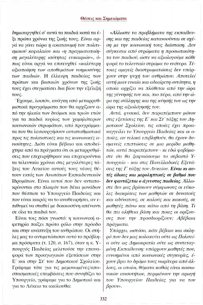 , «Θέσεις και σημειώματα. Απιστία. Η Θέτις, ο Αχιλλέας και ο Απόλλων ήτοι ο Κρόνος τρώει τα παιδιά του. Παιδεία και κοινωνικές ανισότητες», Φιλόλογος, τχ. 125 (Ιούλιος-Αύγουστος-Σεπτέμβριος 2006), σ. 331-332