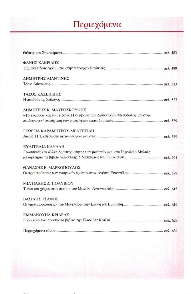 «Περιεχόμενα», Φιλόλογος, τχ. 126 (Οκτώβριος-Νοέμβριος-Δεκέμβριος 2006), σ. 481