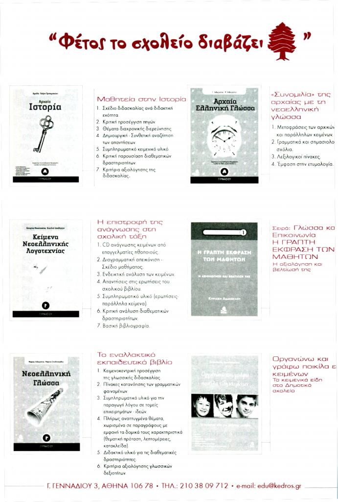 «Φέτος το σχολείο διαβάζει Κέδρο»,