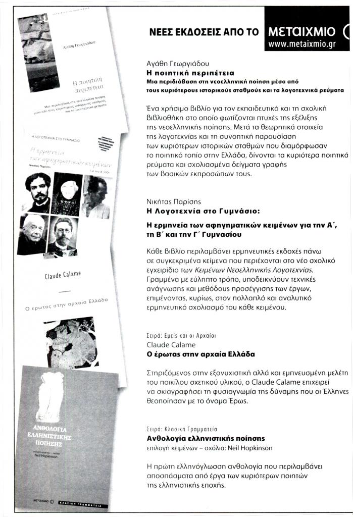 «Νέες εκδόσεις από το Μεταίχμιο», Φιλόλογος, τχ. 126 (Οκτώβριος-Νοέμβριος-Δεκέμβριος 2006), σ. 538