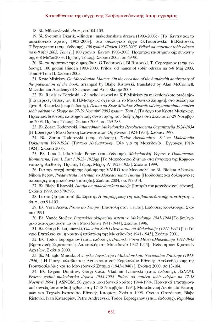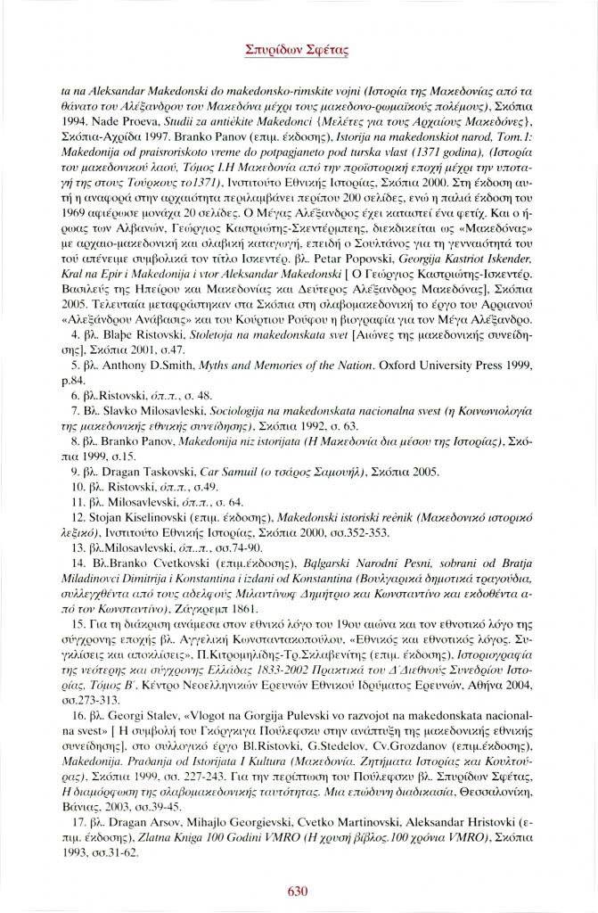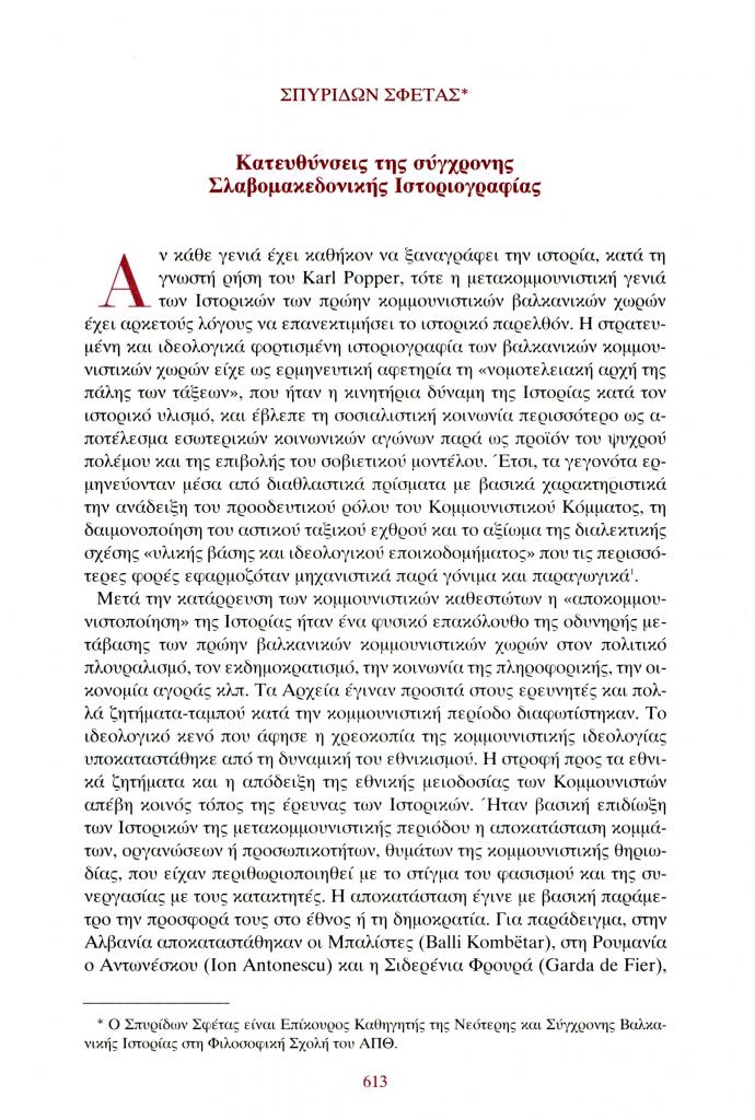 Σφέτας Σπυρίδων, «Κατευθύνσεις της σύγχρονης Σλαβομακεδονικής Ιστοριογραφίας», Φιλόλογος, τχ. 130 (Οκτώβριος-Νοέμβριος-Δεκέμβριος 2007), σ. 613-632