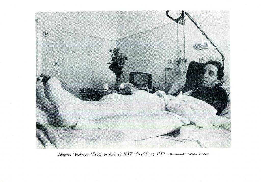 Μπέλιας Ανδρέας, «Γιώργος Ιωάννου: Ενθύμιον από το ΚΑΤ. Οκτώβριος 1980», Φυλλάδιο, τχ. 5-6 ( 1982), σ. 87