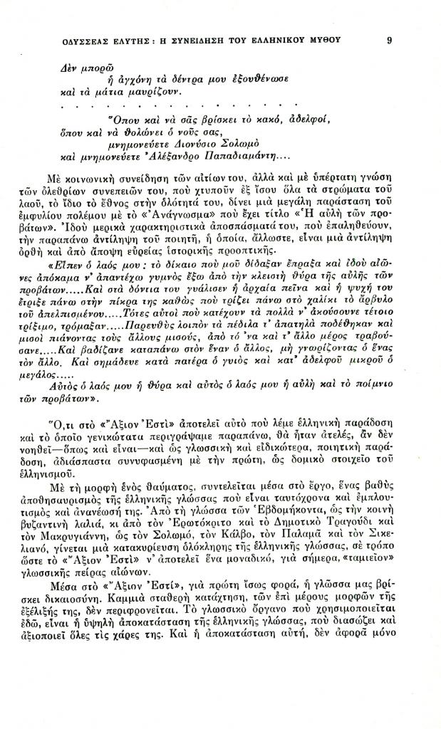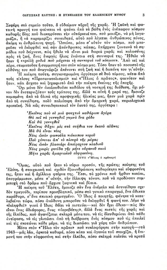 , «Οδυσσέας Ελύτης. Η συνείδηση του ελληνικού μύθου»,