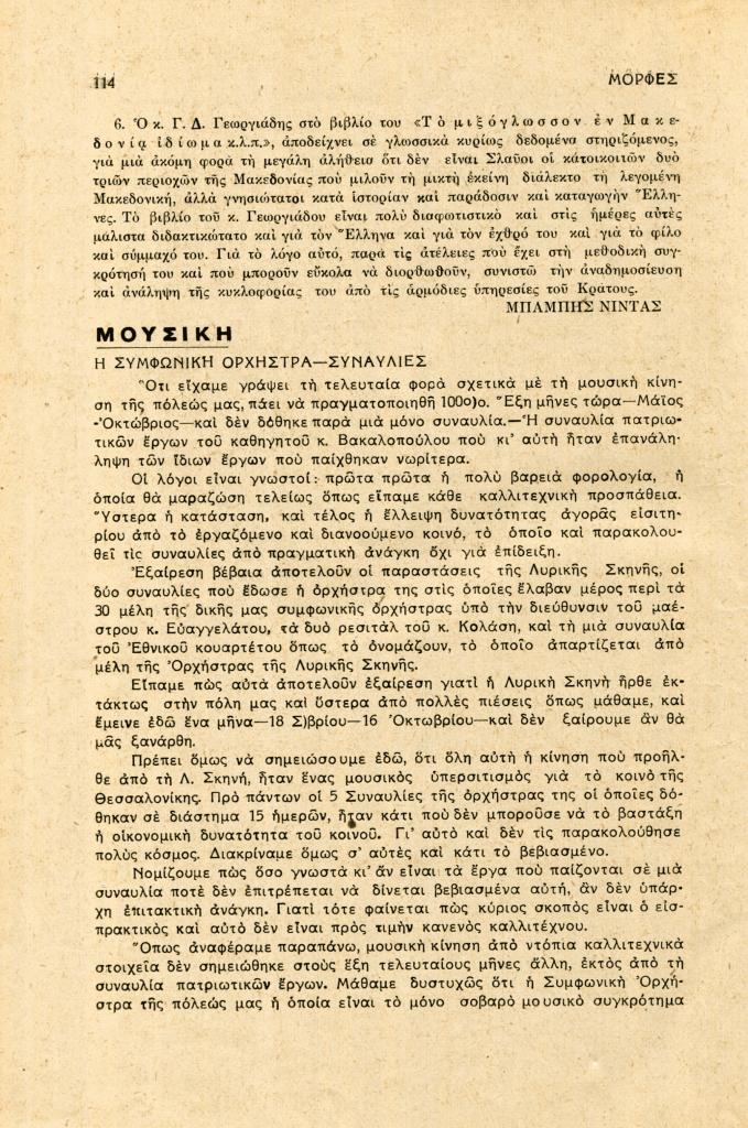 Καραηλίας Ευάγγελος, «Μουσική. Η συμφωνική ορχήστρα-Συναυλίες», Μορφές, τχ. 27 (Δεκέμβριος 1948), σ. 114-115