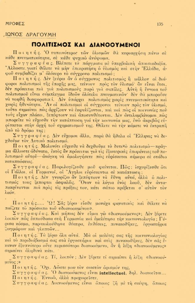 , «Πολιτισμός και διανοούμενοι»,