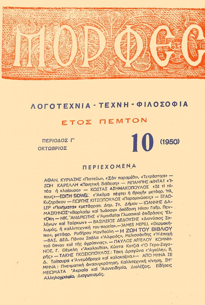 «Περιεχόμενα», Μορφές, τχ. 49 (Οκτώβριος 1950), σ. (εξώφυλλο)